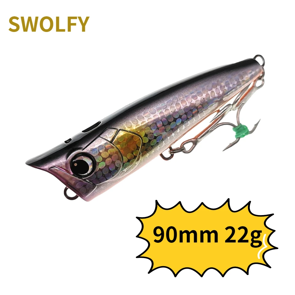 SWOLFY-señuelo de Pesca de Mar, anzuelos afilados, anzuelos grandes, Wobblers 22g 90mm, aparejos de lubina flotante superior, cebo duro, piscardo de fundición larga
