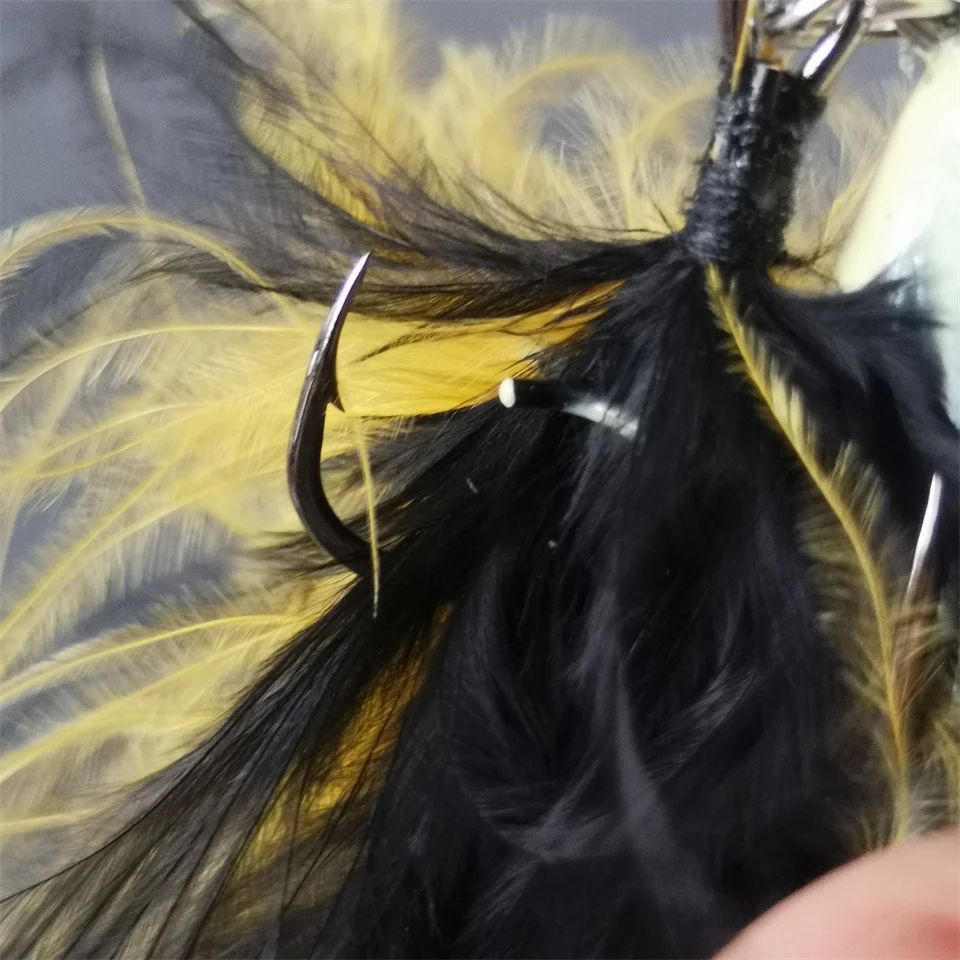 1. Equipado con 2 juegos de anzuelos agudos de plumas afiladas hechos de acero inoxidable de alta resistencia.