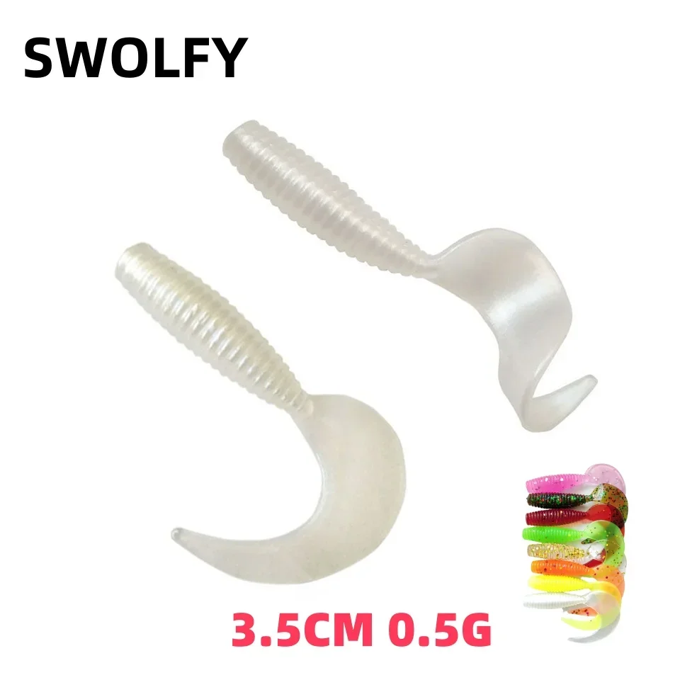 Swolfy-señuelo de pesca suave de 20 piezas, Wobblers de silicona Artificial, gusano Grub, señuelos para lubina, trucha, carpa, 3,5 cm, 0,5g