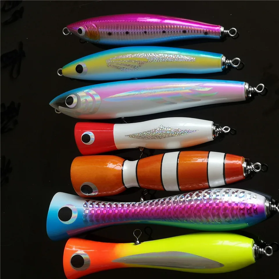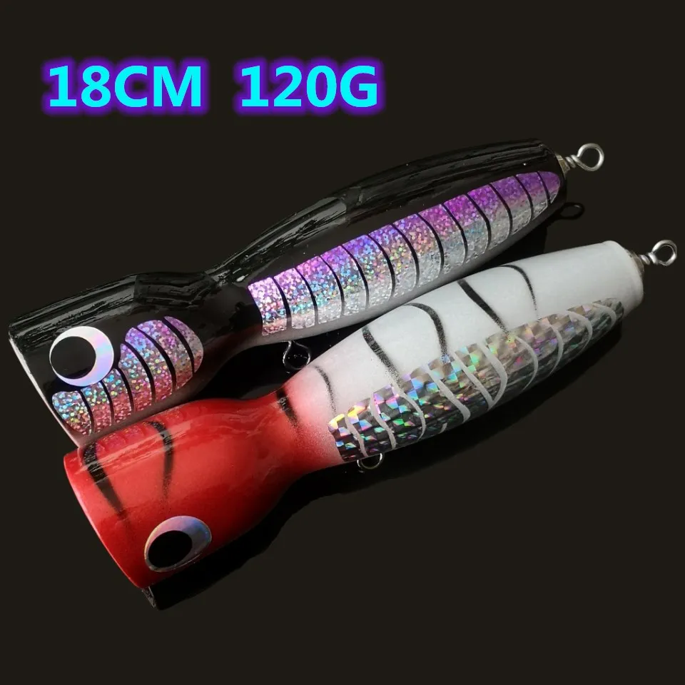Swolfy-señuelo Popper grande de madera para pesca en barco, cebo de superficie, 60g/120 GT, 2 unidades por lote