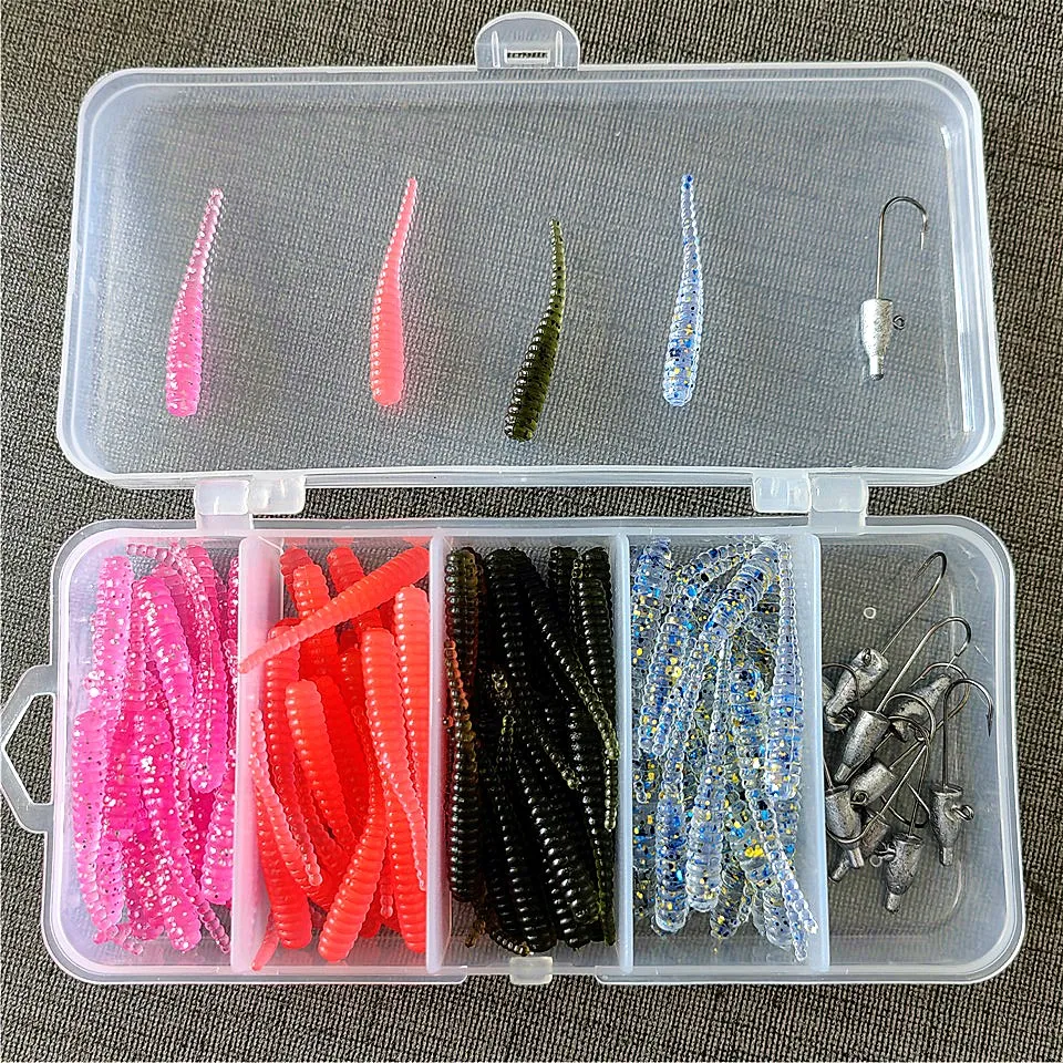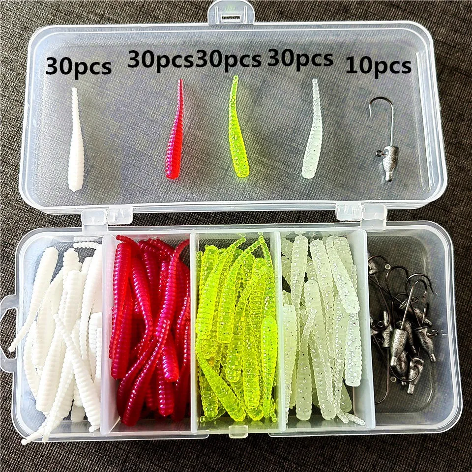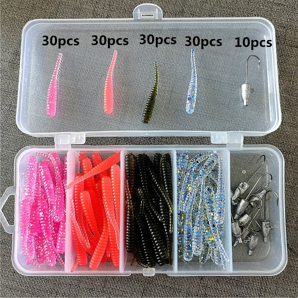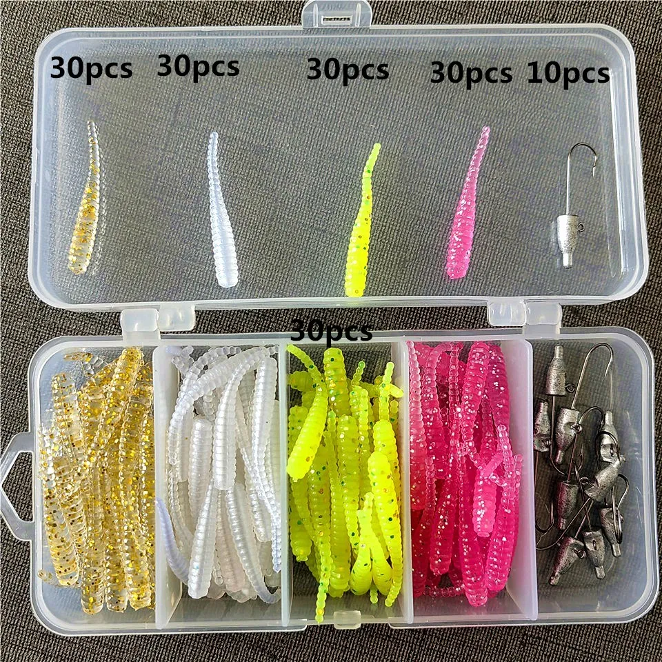 Swolfy-señuelo suave AJING, anzuelo de pesca de roca, Swimbaits Jig, Wobber Worm Bait, 130 piezas + 1 caja, lote de 1,4 unidades