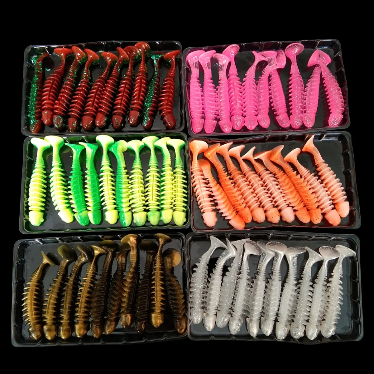 Swolfy-SEÑUELOS blandos de 60 piezas, cebos de gusanos de silicona, 65mm, 3g, Jigging, Wobblers de pesca, Swimbaits artificiales para aparejos de carpa y lubina