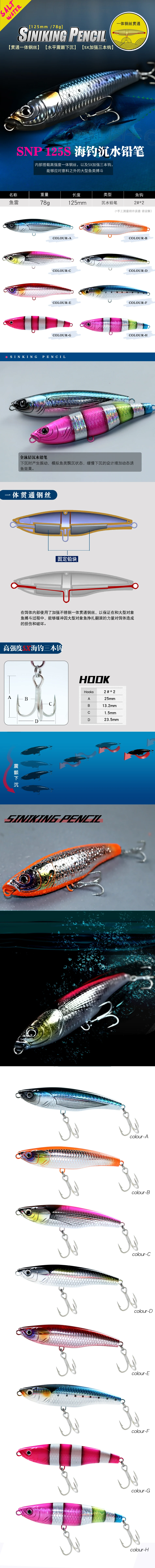 Swolfy-Señuelos de Pesca Stickbait, lápiz de hundimiento Wobbler, cebo duro Artificial para pesca de atún en el mar, 125MM, 78g, 1 unidad