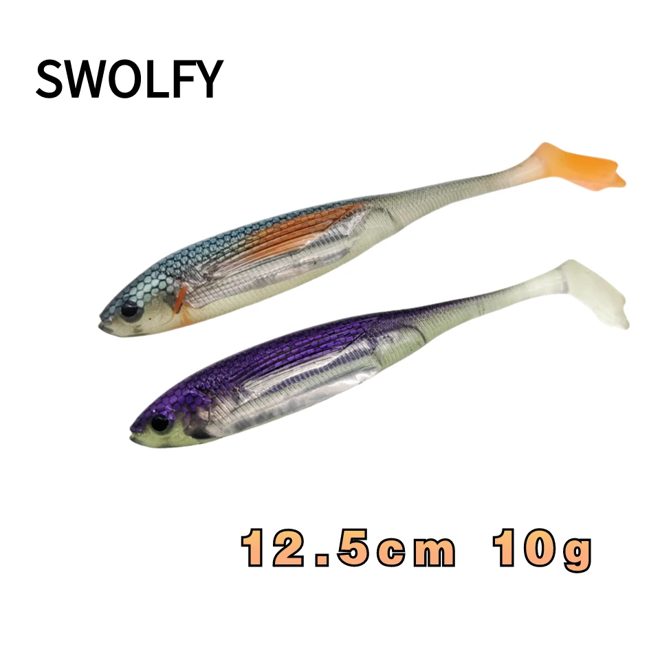 SWOLFY-SEÑUELOS DE plástico blando para pesca, cebo de silicona, paleta de cola de sábalo, gusano, Swimbaits, trucha de lubina de agua dulce, 2 piezas, 125mm/10g