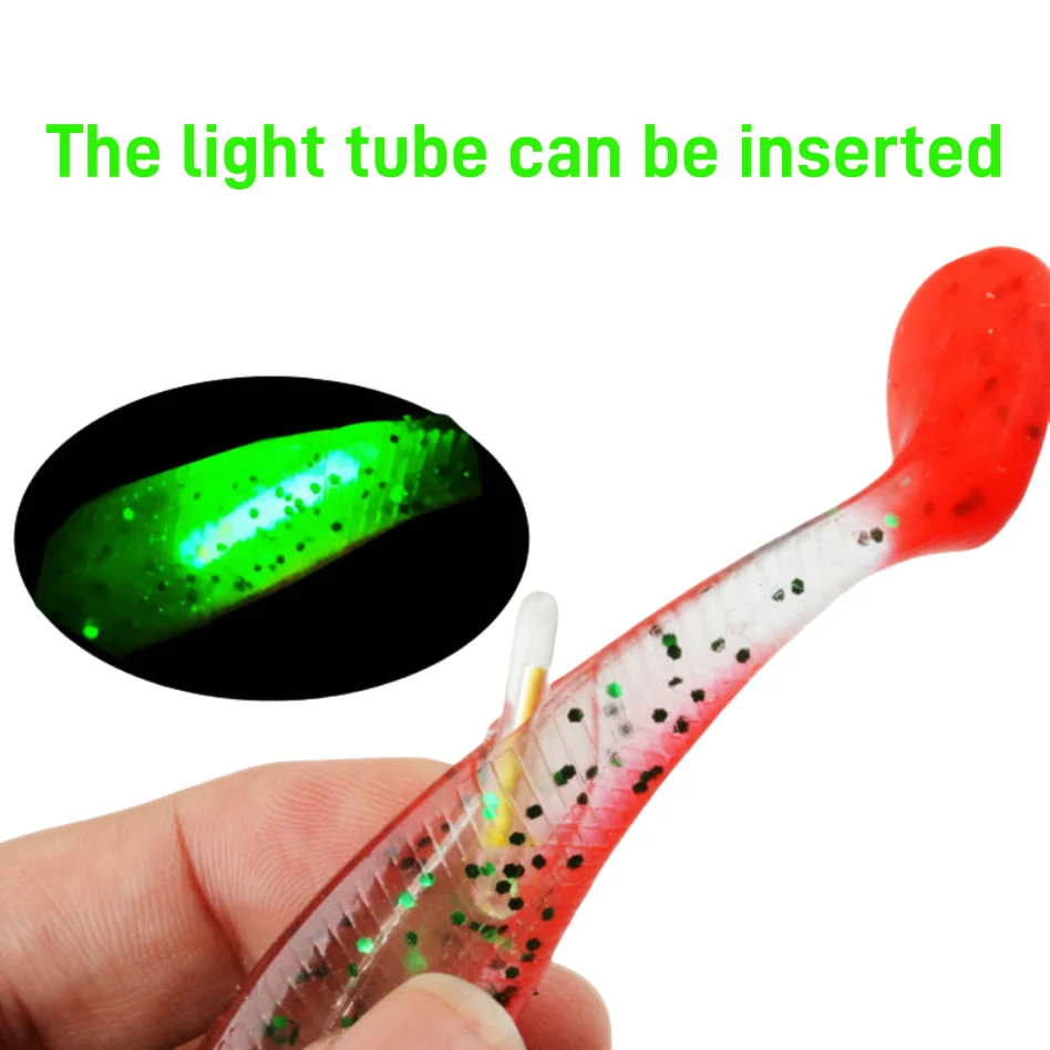 T-tail Soft Lure Club, 3 piezas, 4 tamaños de cebos blandos con tubo reflectante, barra luminosa, puede insertar, tamaño múltiple para pesca