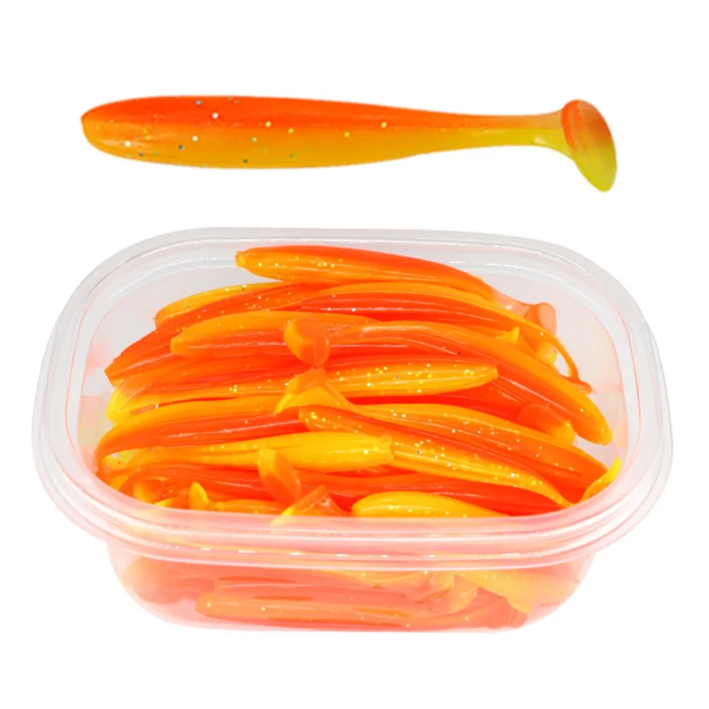 Nombre del producto: cebo de natación T-Tail Material :PVC Estilo: 20 opciones Color: Amarillo/rosa/naranja, etc. Tamaño único: 6cm (2,36 pulgadas)/9cm (3,54 pulgadas) Peso individual: 1,2g/4,2G Lista de productos: 50 unids/caja de cebo Adecuado para: Lua cebo, pesca en agua dulce, pesca en el mar, pesca en barco, lubina, bucktails, pez negro, bagre, pez mandarín, Pez canela, pez Tigre, etc. Nota: Debido a las diferentes configuraciones de iluminación y pantalla, el color del artículo puede ser ligeramente diferente de la imagen. Debido a las diferentes mediciones manuales, permita una diferencia de tamaño de 3-5mm (0,12-0,20 pulgadas).