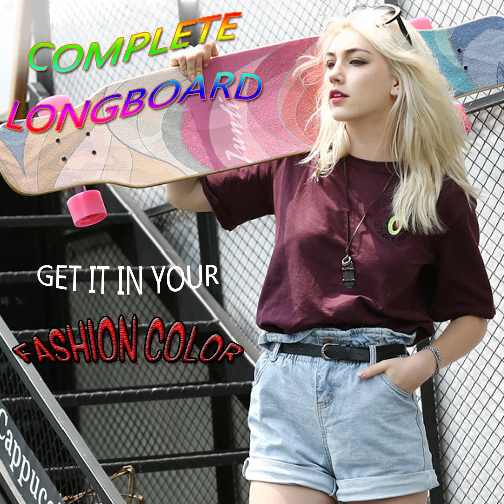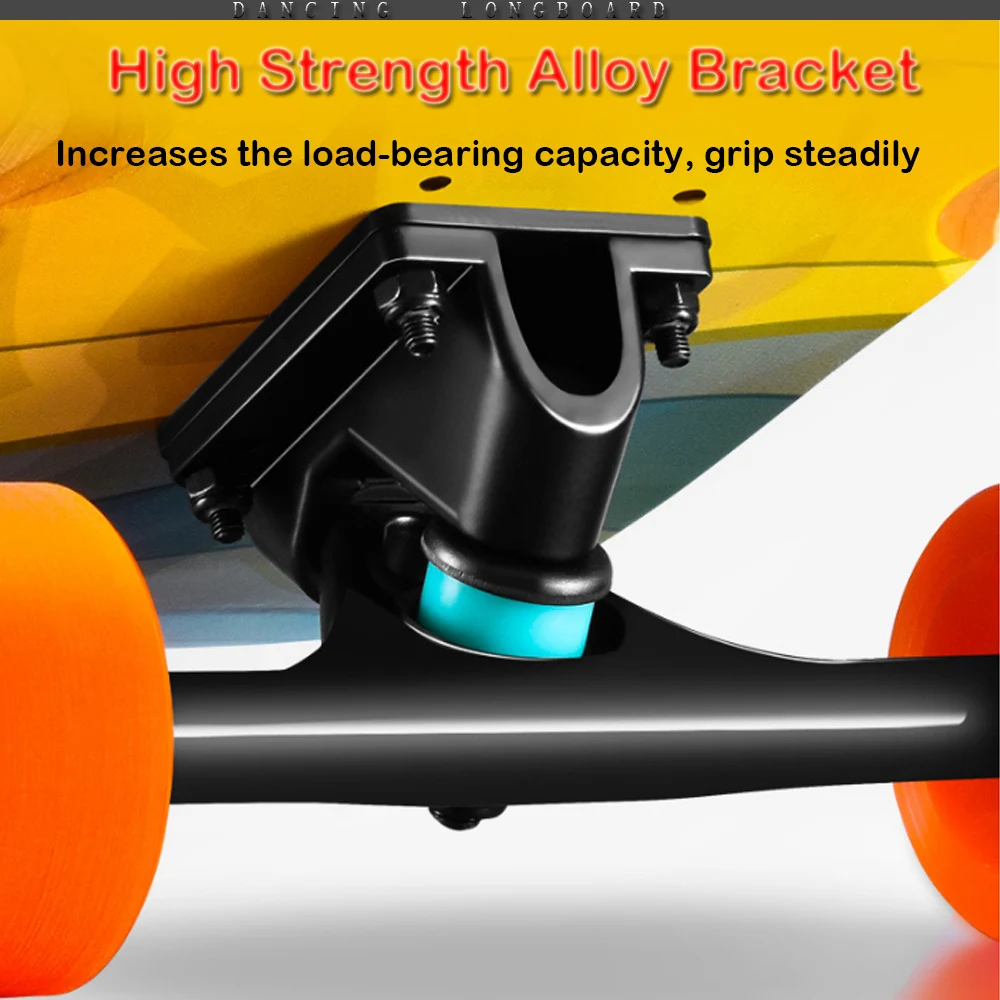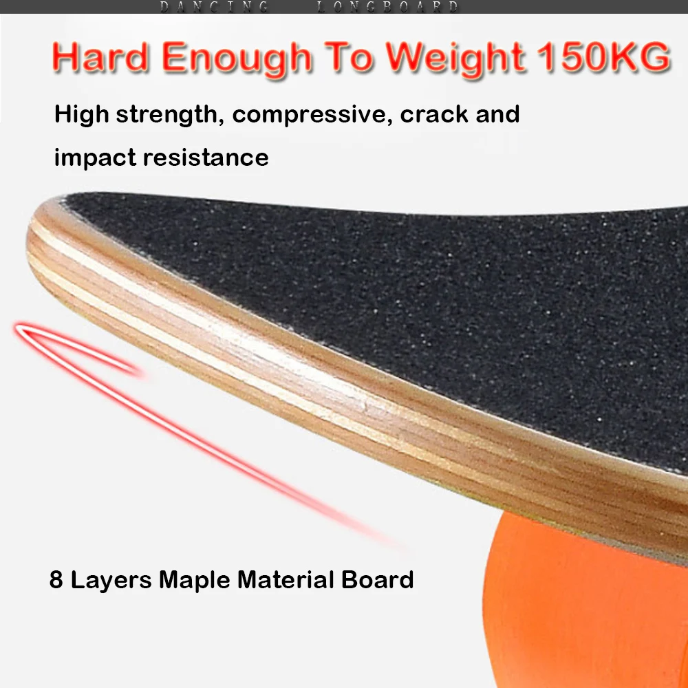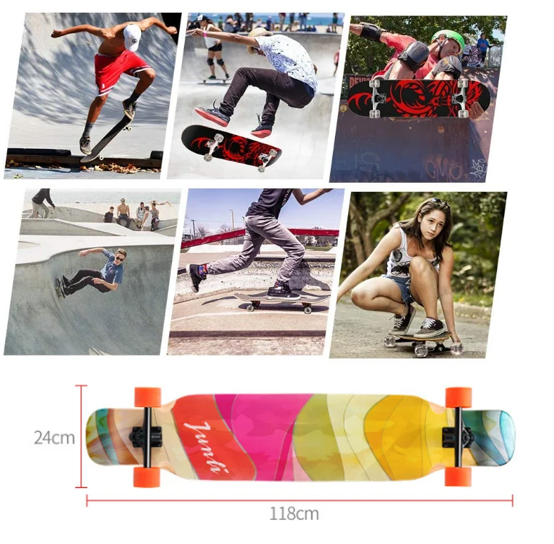 Robusto y sólido: monopatín completo de 118CM * 24CM, 8 capas de madera natural de arce ruso que combinan con camiones de aleación de aluminio reforzado de 7 pulgadas le brindan un soporte sólido y confiable. El peso máximo de transporte del monopatín es de hasta 150kg.