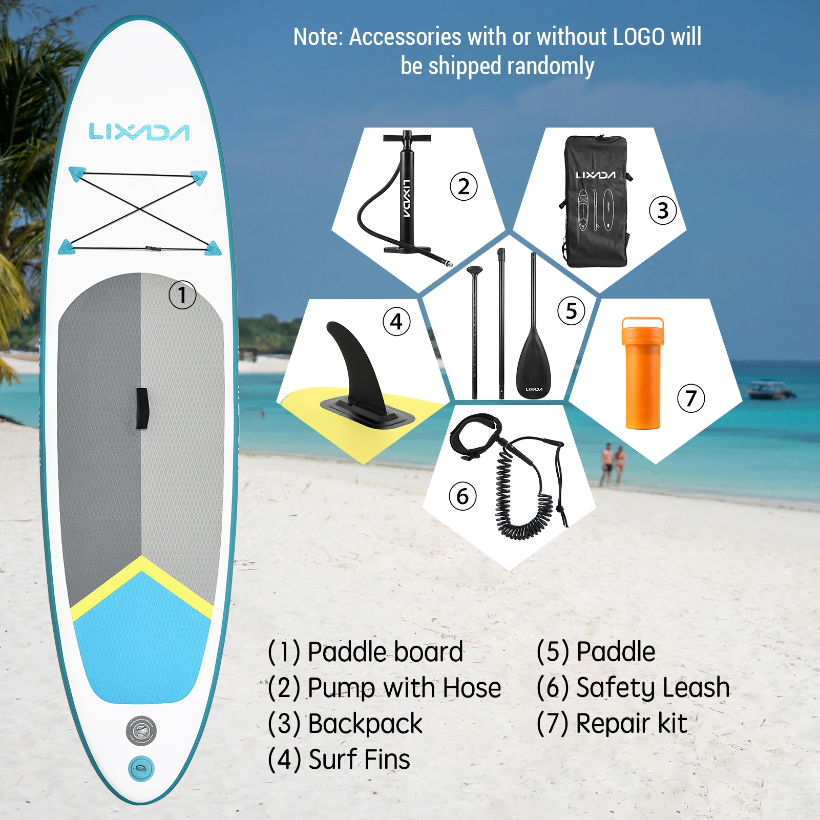 Viene con accesorios imprescindibles, que incluyen una paleta ajustable, aleta de surf, correa de seguridad en espiral, bomba de inflado, kit de reparación, correa de almacenamiento, mochila de viaje.