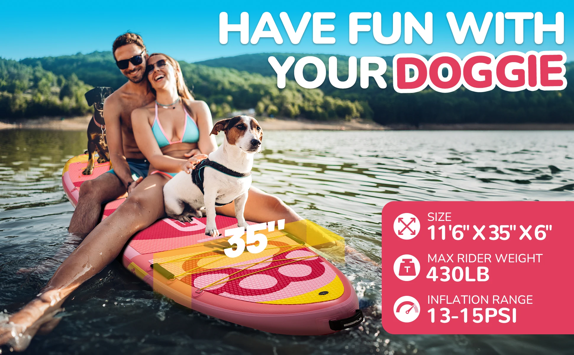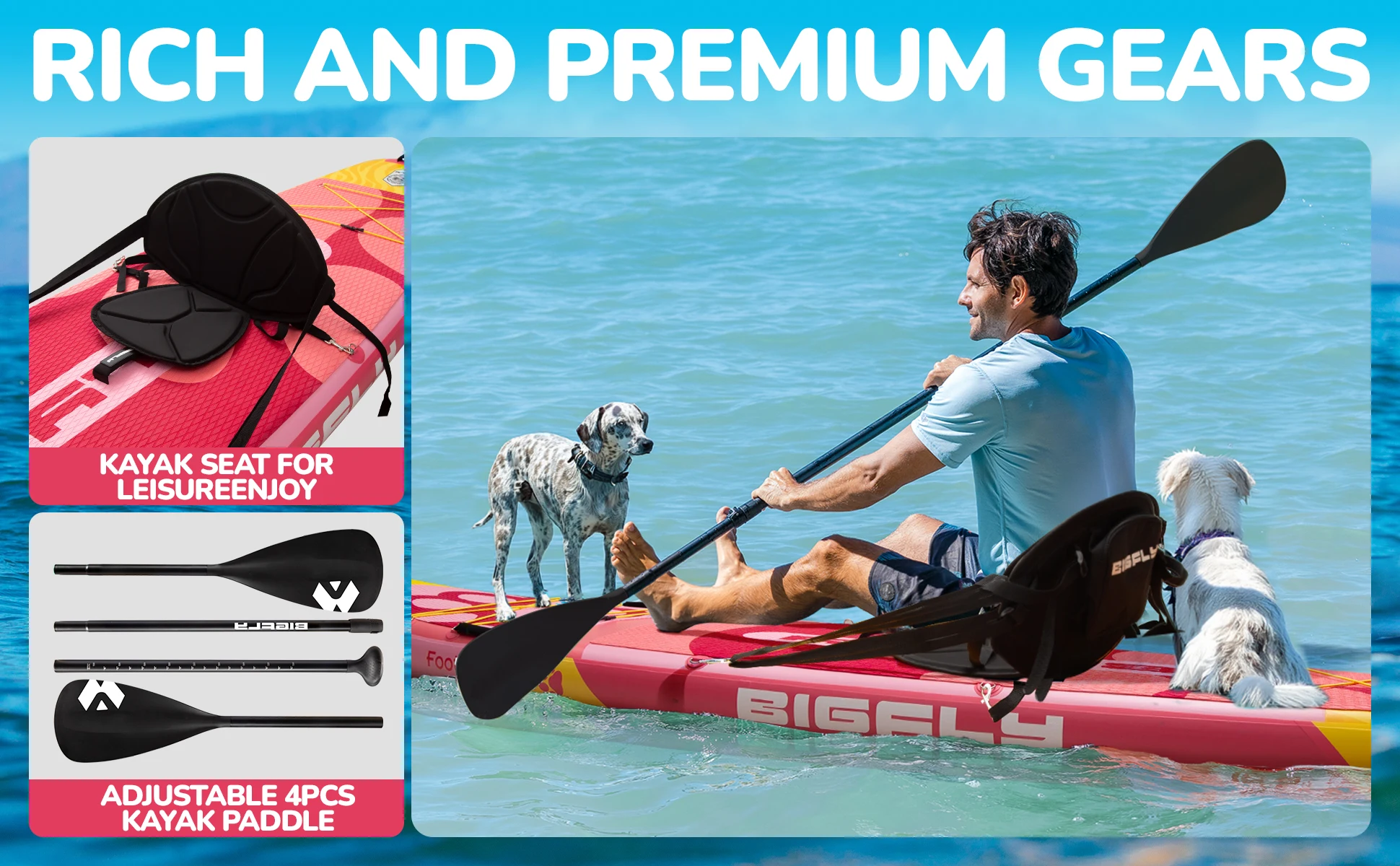 Tabla de Paddle de Surf BIGFLY, tabla inflable acuática de estilo permanente antideslizante para mascotas de 11'6 ''* 35'' * 6'', con accesorios, Sup сап funçõesрд