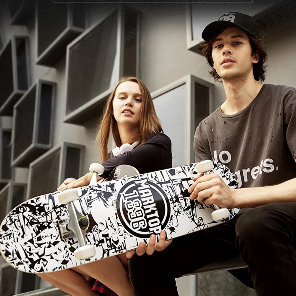 Tabla de Skate para principiantes completa 79cm/31in doble Kick cóncavo monopatín chico y chica tablero de habilidades de madera de arce