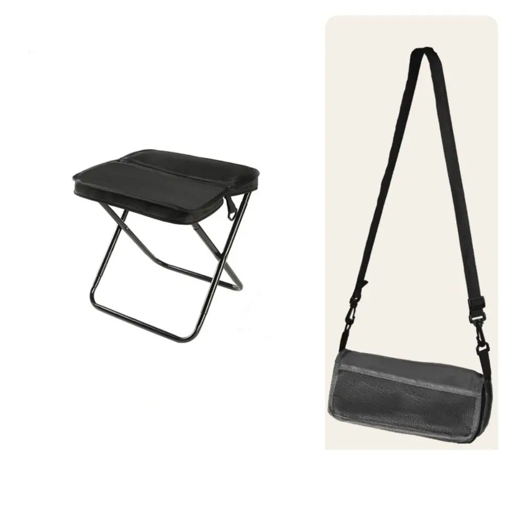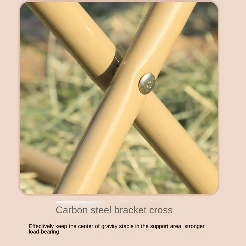 3. Estructura de acero robusta: fabricado con acero de alta resistencia con un acabado con recubrimiento en polvo, el sistema de soporte del mini taburete para acampar resiste el desgaste, manteniendo su integridad y apariencia elegante con el tiempo.