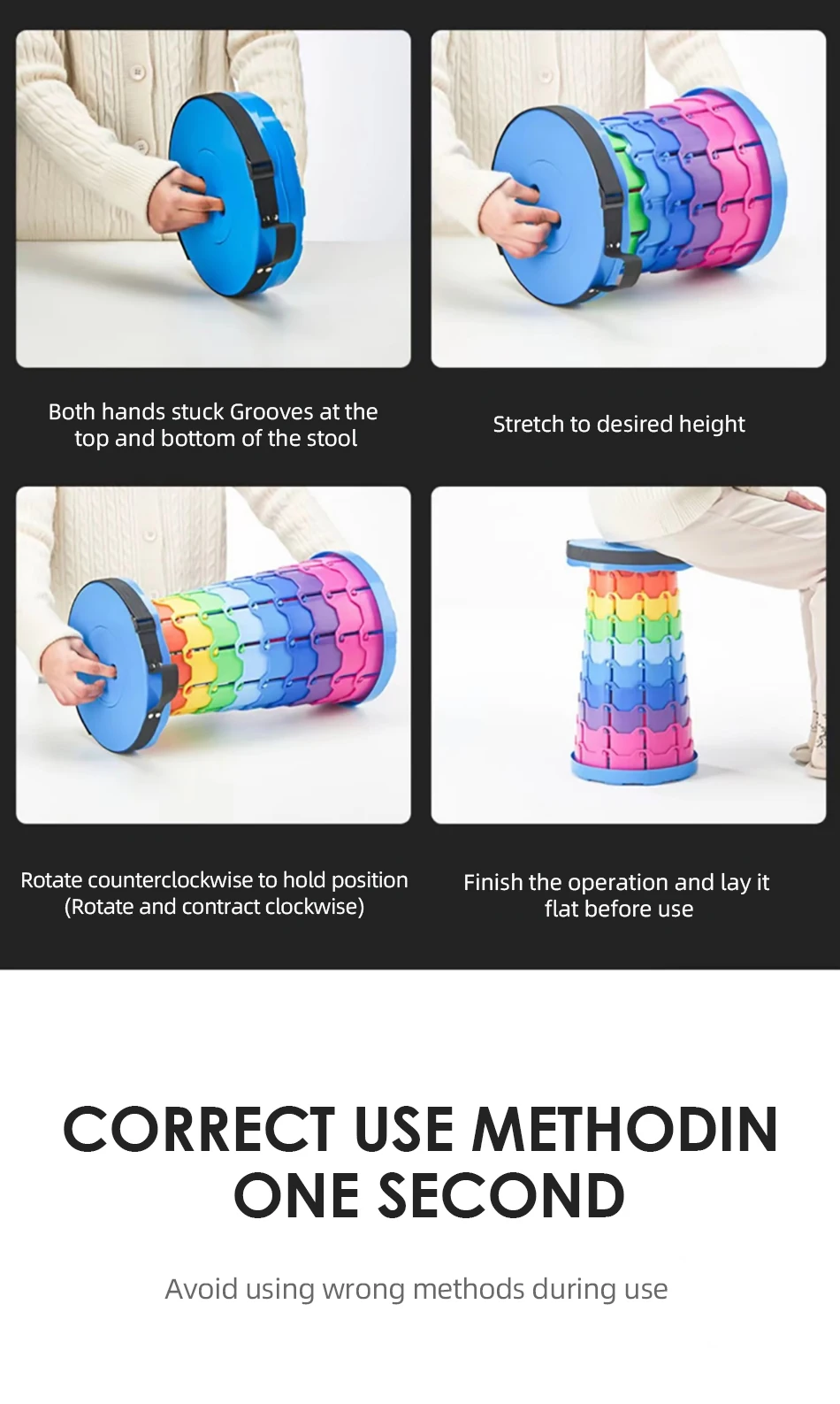 • Plegable retráctil:El taburete se puede retraer y plegar fácilmente, lo que lo hace conveniente de usar y almacenar.