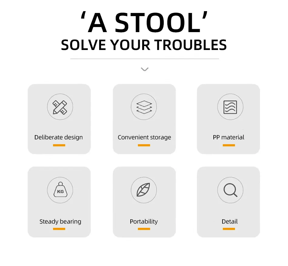• Portátil y plegable:Este taburete está diseñado para ser portátil y plegable, por lo que es fácil de transportar y almacenar.