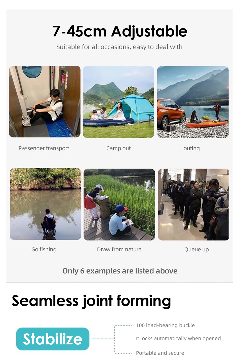 El taburete telescópico plegable es bien construido, peso ligero, taburete robusto que le permite sentarse cómodamente y sentarse con estilo. Se puede utilizar en todas partes, senderismo en la naturaleza, centro de la ciudad, parques, largas caminatas, e incluso en casa.