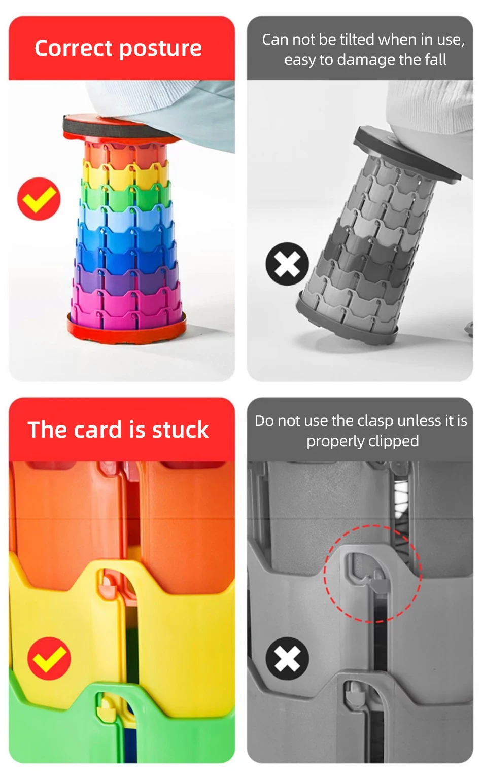 • Plegable retráctil:El taburete se puede retraer y plegar fácilmente, lo que lo hace conveniente de usar y almacenar.
