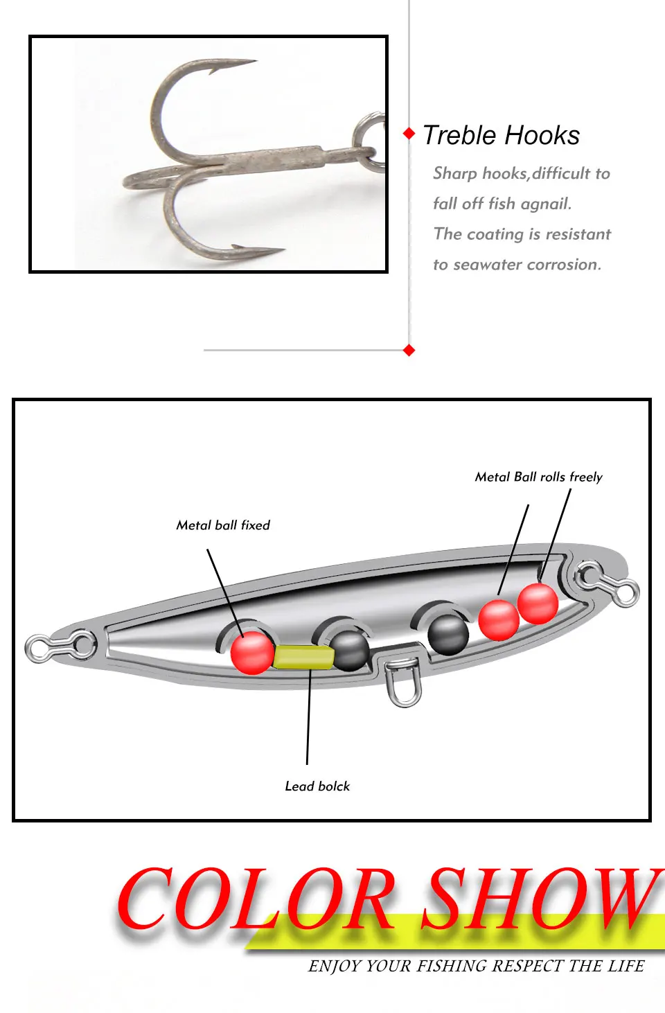 5.Bolas de Metal: Para mantener el equilibrio del señuelo de pesca, para el lanzamiento a distancia más lejana.