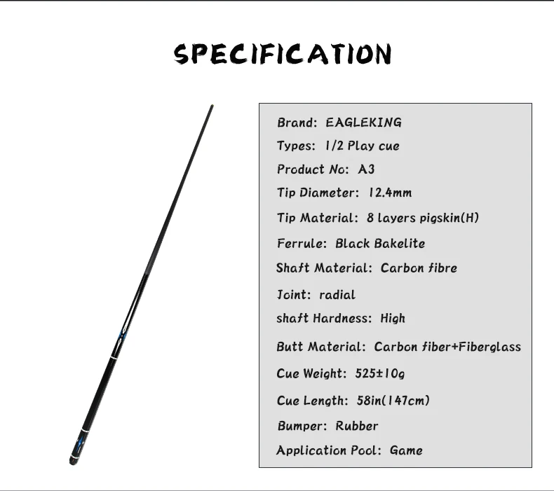 Taco de billar de fibra de carbono 1/2, taco dividido de 8 capas, tecnología de piel de cerdo, madera, punta de 12,4mm, novedad