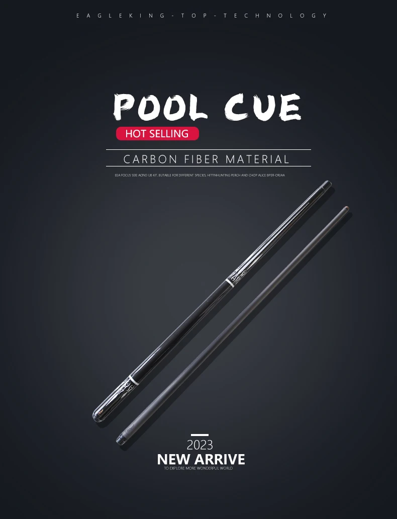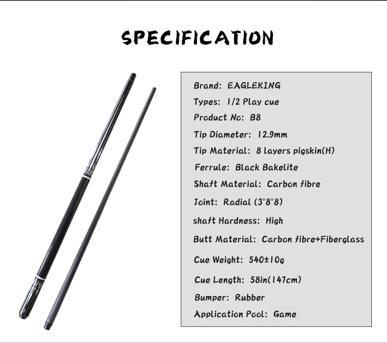 Taco de billar de fibra de carbono 100%, eje de carbono completo Protaper, punta de 12,9mm, 1/2, 147cm/58 pulgadas, 19oz