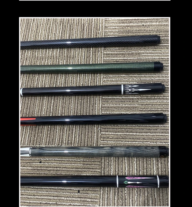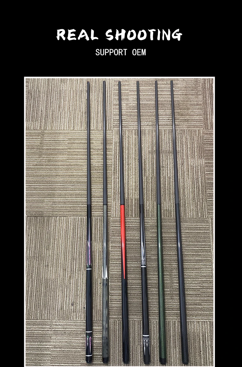 Taco de billar de fibra de carbono, tecnología negra, eje de fibra de carbono, 12,9mm, PigskinTip 1/2, 19oz, 147cm