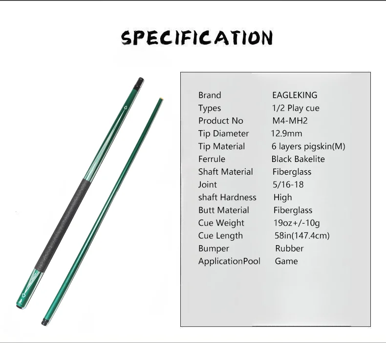Taco de billar de fibra de vidrio 100%, Taco de punta de 12,9mm, 1/2, taco dividido, 58in/147cm