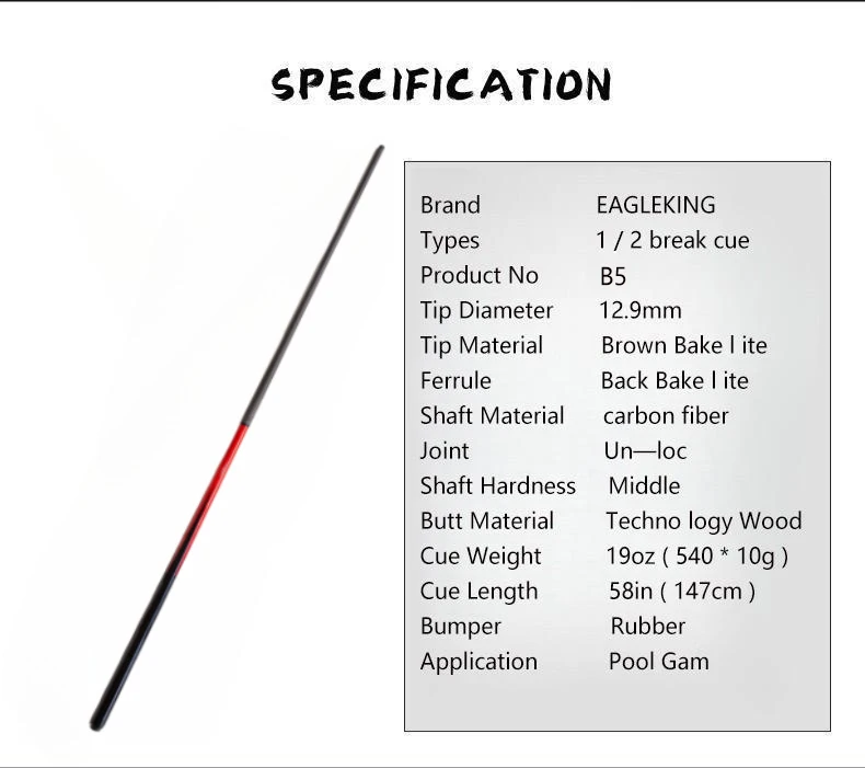 Taco de fibra de carbono para billar, Taco de 1/2mm, punta de 12,9mm, tecnología negra, OEM de fábrica