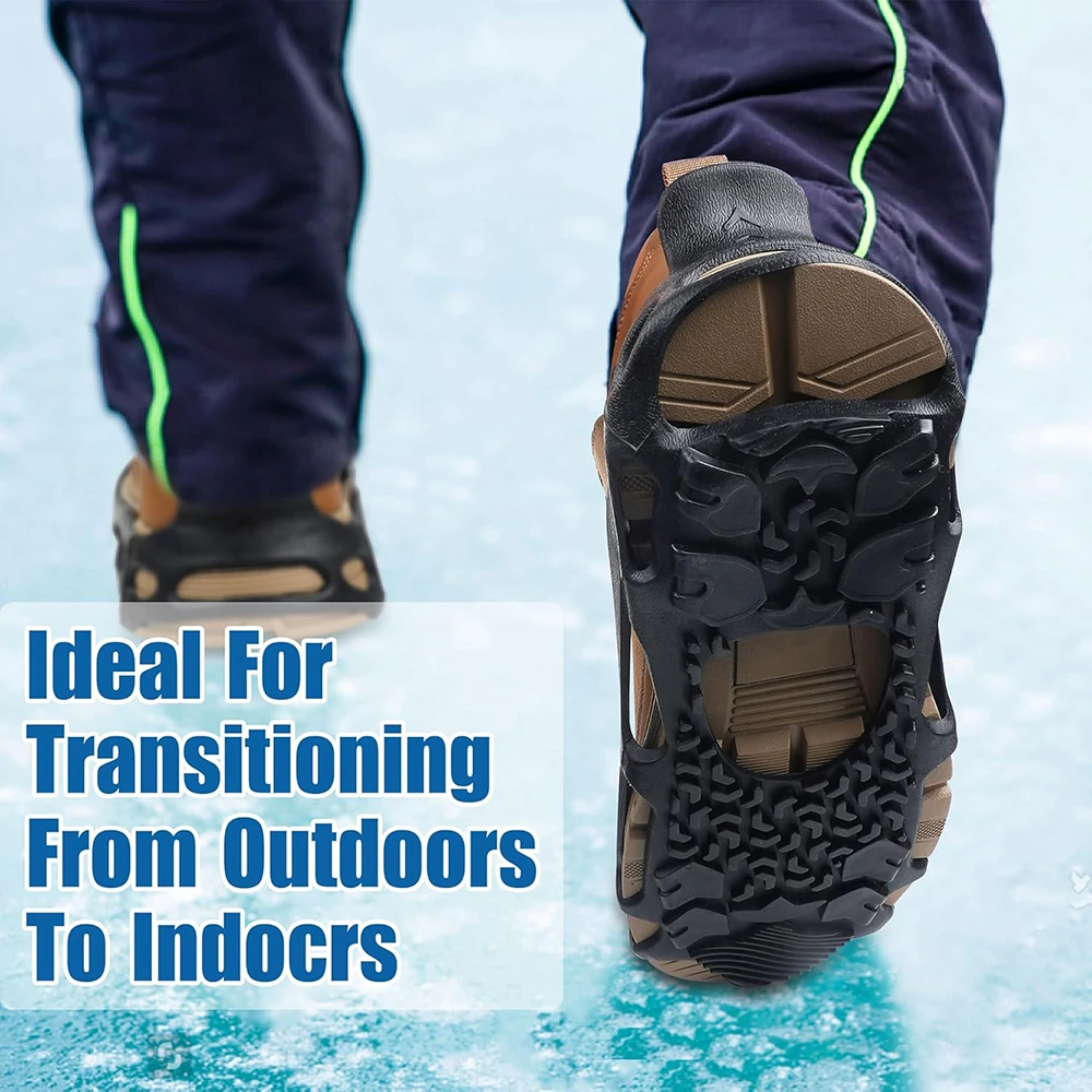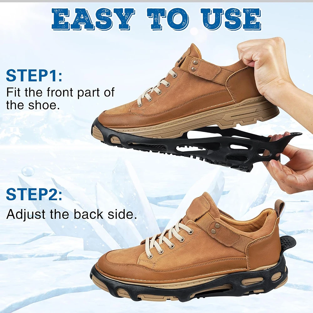 3.Los tacos de hielo abrazan la puntera y el talón de los zapatos o botas, reducen el riesgo de resbalones y lesiones sin rayar las superficies y pasan fácilmente de exterior a interior sin quitarlos.