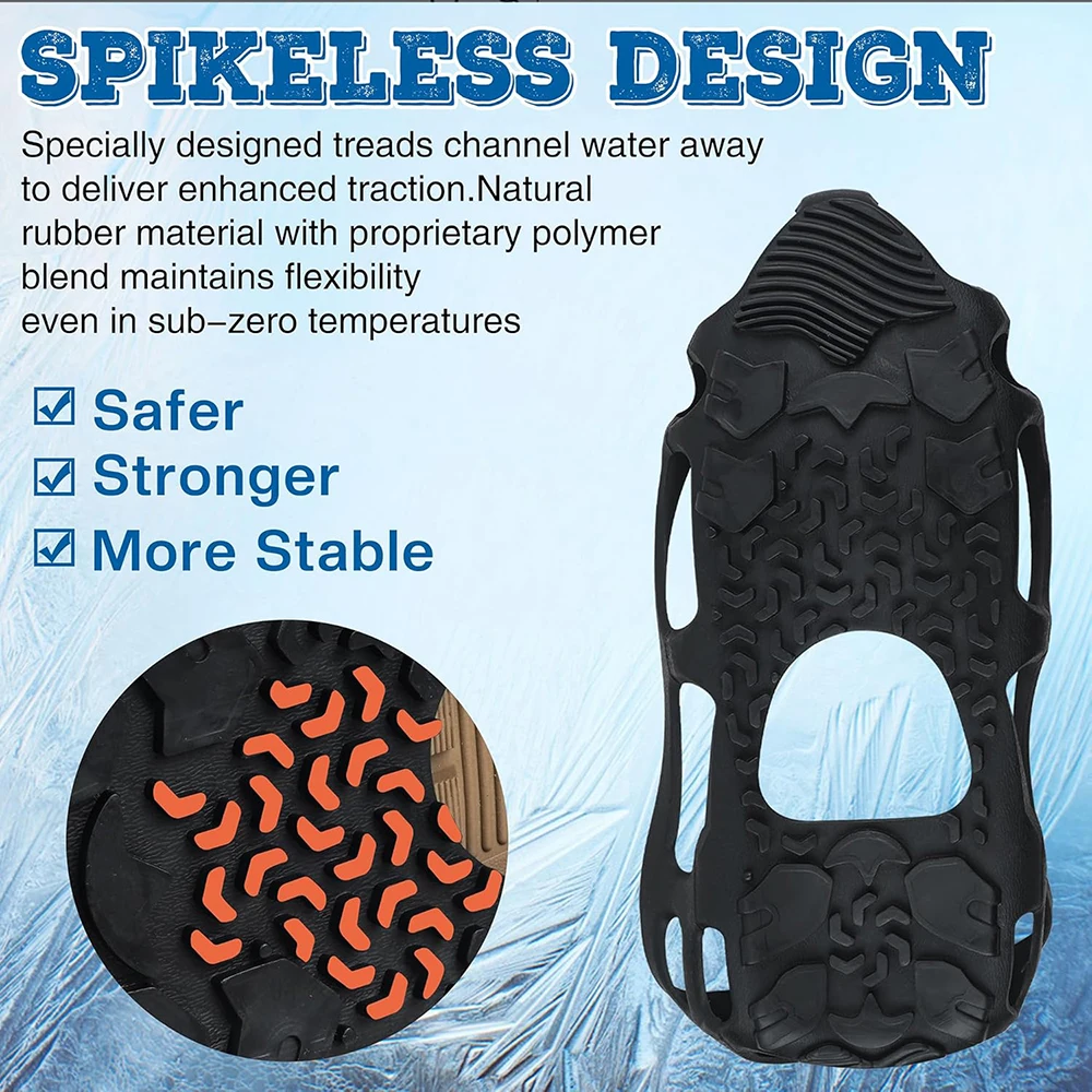 2.Los tacos para hielo sin púas hechos de material de caucho natural con una mezcla de polímeros patentada mantienen la flexibilidad incluso en temperaturas bajo cero, lo que garantiza que puedan soportar el uso en duras condiciones invernales.