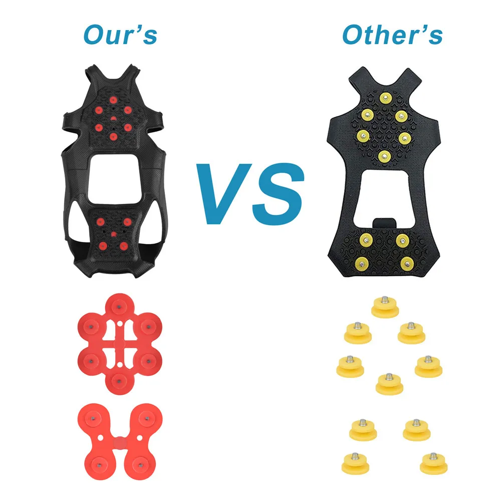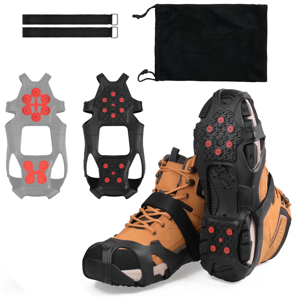 Tacos de hielo para zapatos y botas Acero de tungsteno 10 tachuelas Crampones antideslizantes de gran tamaño para botas de montaña zapatos de nieve para mujeres/hombres