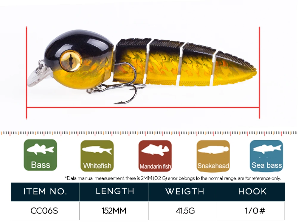 1, 6 pulgadas. Señuelo DE PESCA DE 5 segmentos