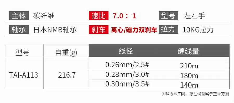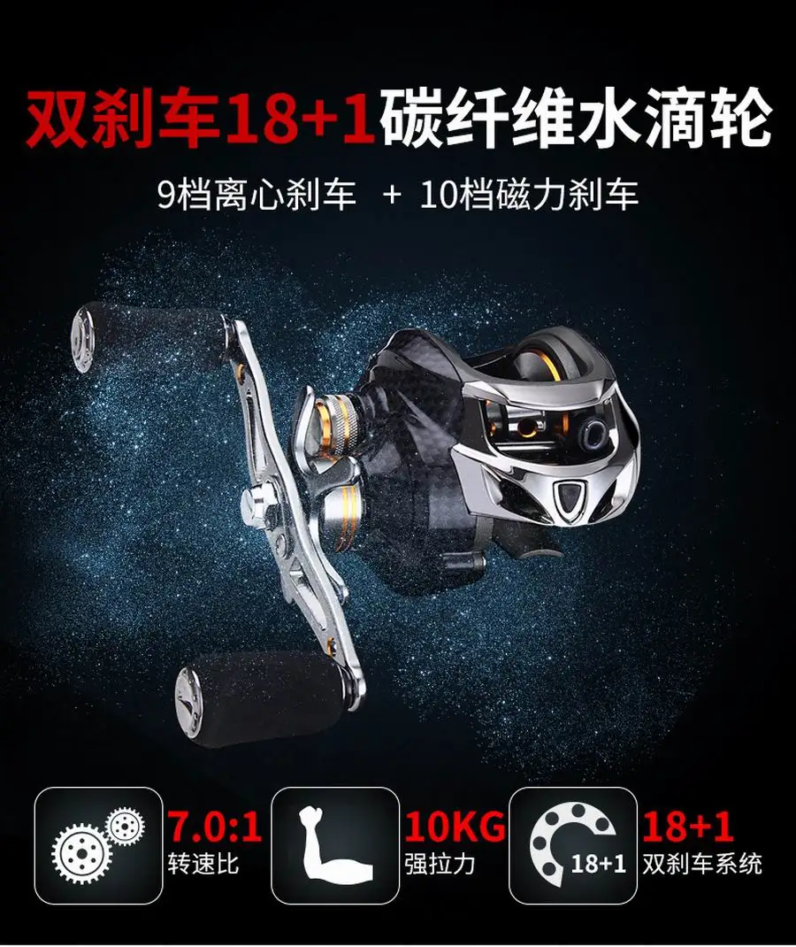 Taigek-carrete de pesca de fibra de carbono FR181D, 18 + 1 rodamientos, 9 centrífugos, 10 grados de freno magnético, 216,7g, 7,0: 1, 0,30mm x 140M, 10kg de carga