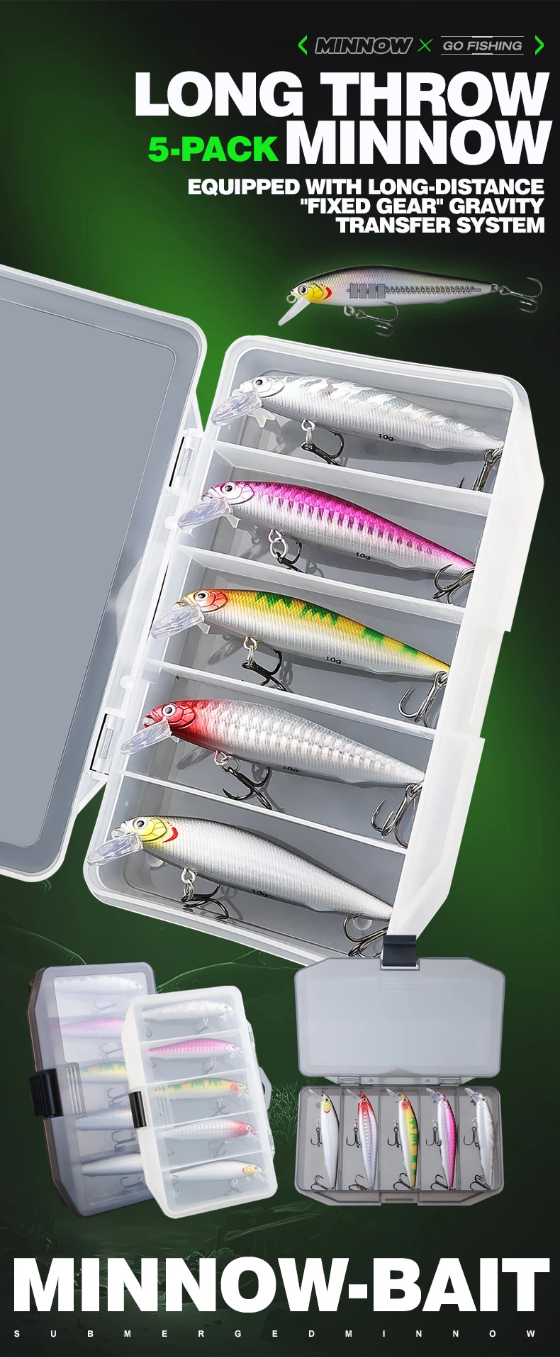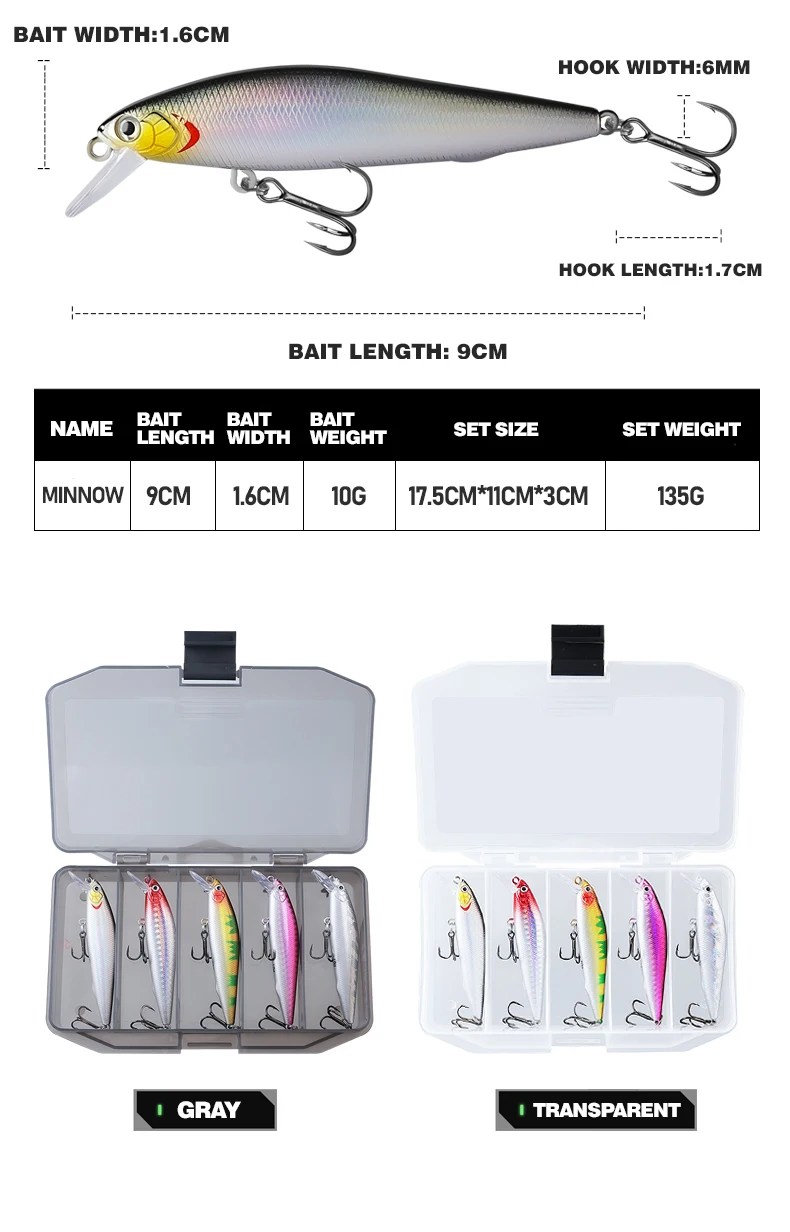 Disponibles en juegos de 1 a 5 piezas, estos pececillos ofrecen flexibilidad para diferentes necesidades y preferencias de pesca.