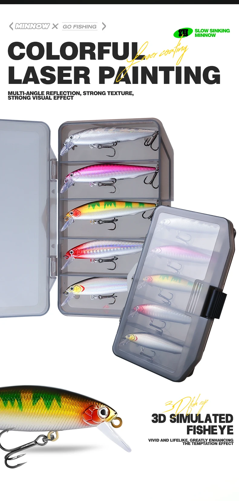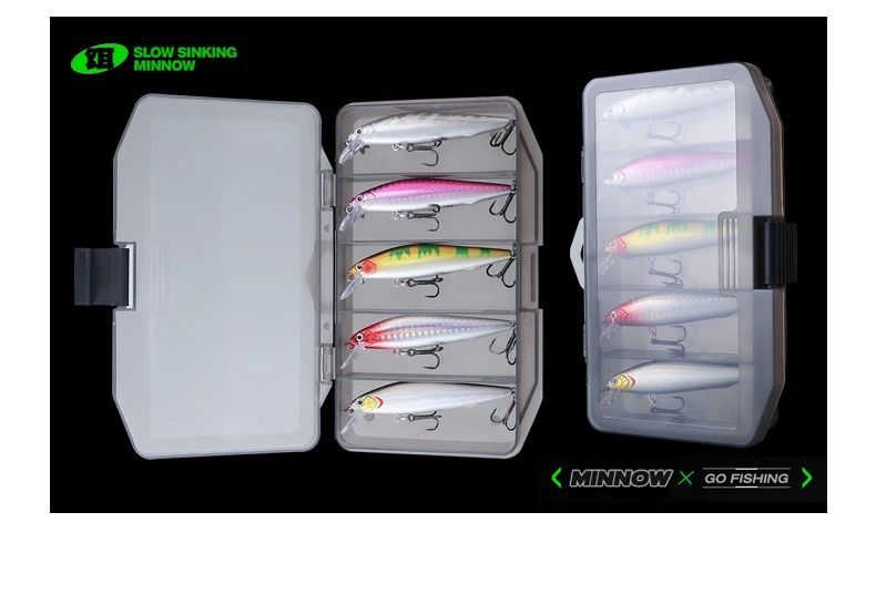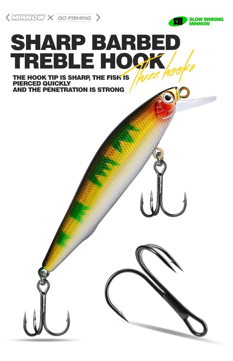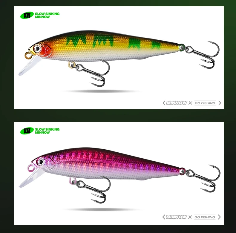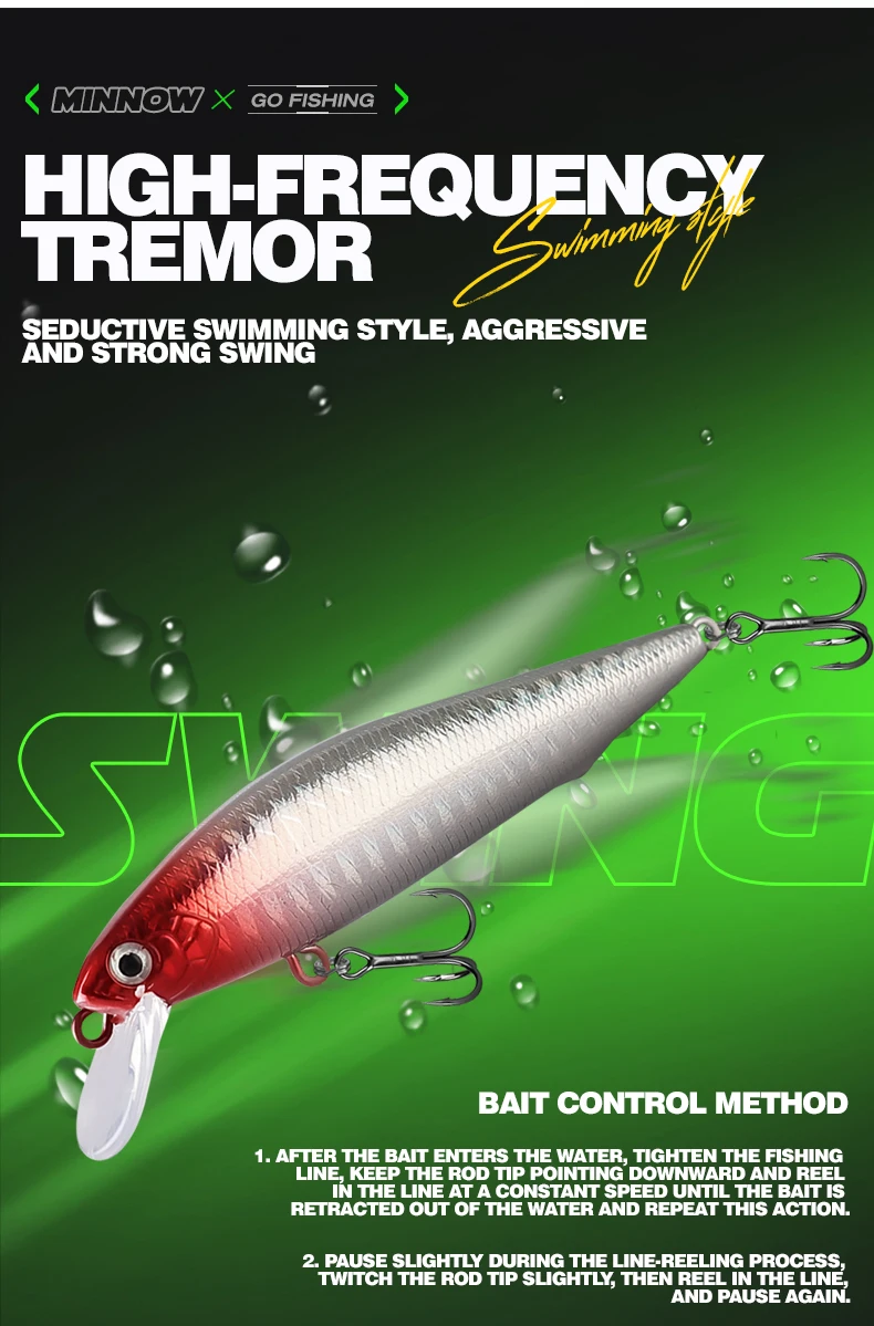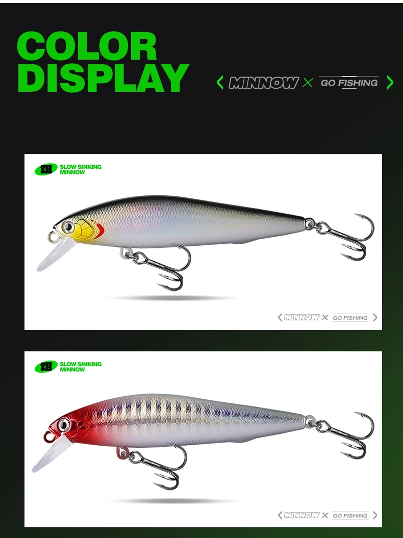 Con 9 cm de largo y 10 g de peso, estos pececillos imitan presas reales, atrayendo a los peces de manera efectiva.