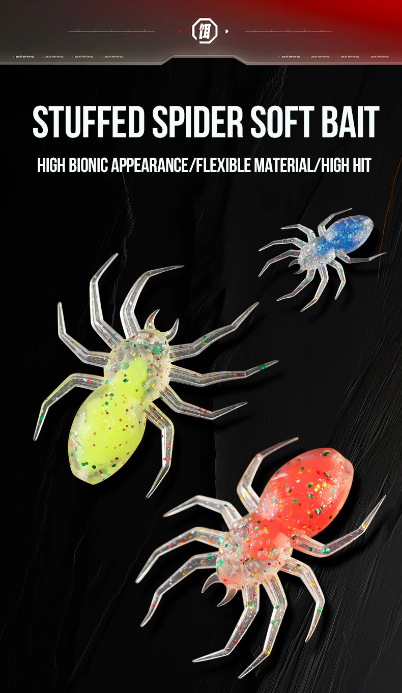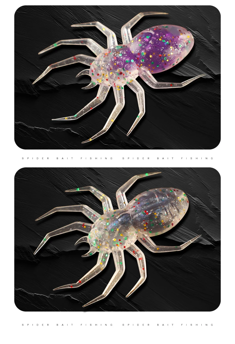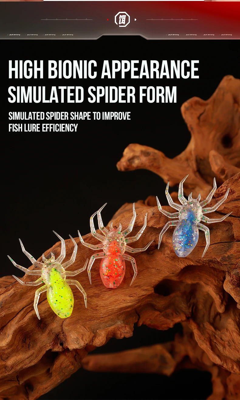 TAIYU 15 unids/set señuelo de araña suave con ganchos caja de almacenamiento cebo de pesca 4 cm/1,3g Micro cebo de araña biónico Artificial aparejos de pesca