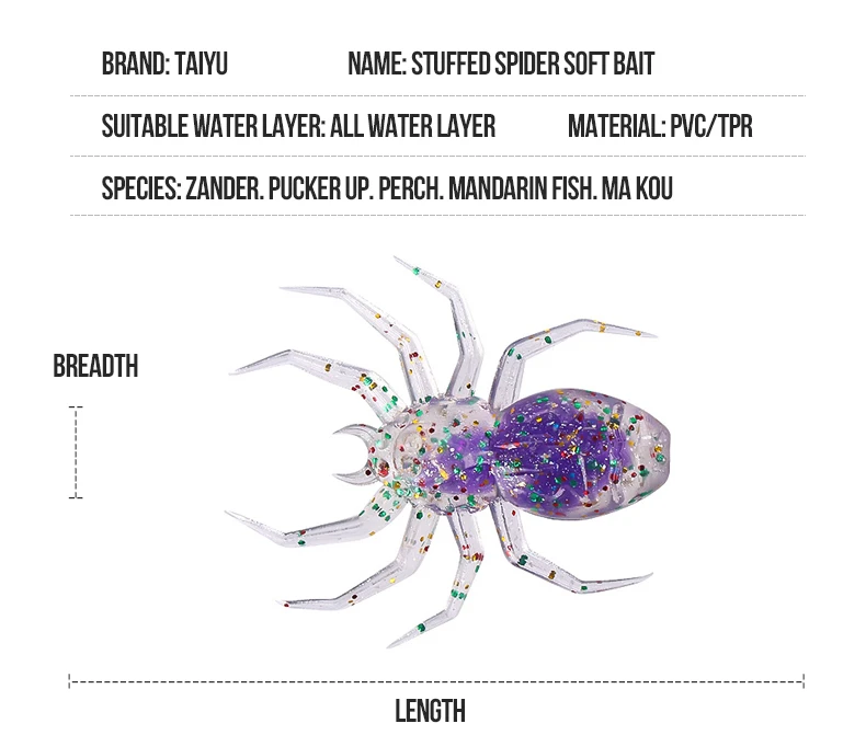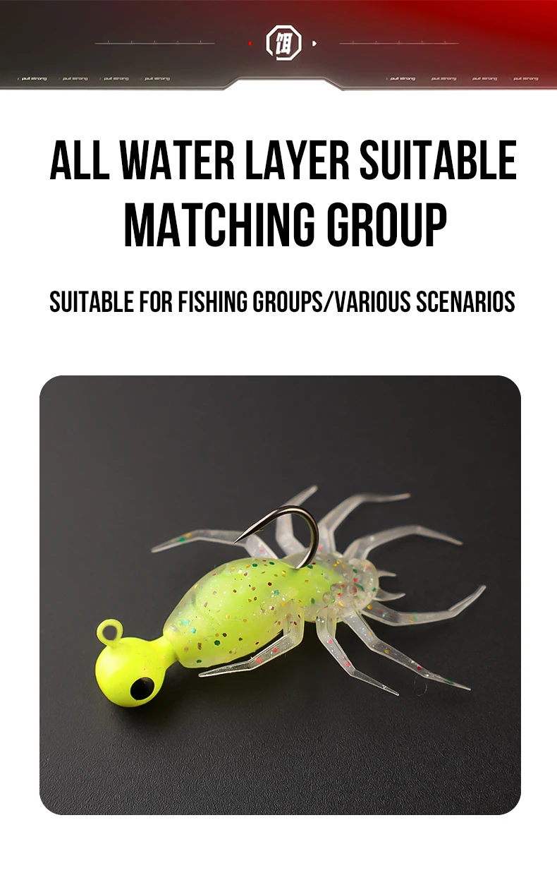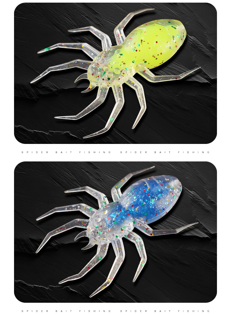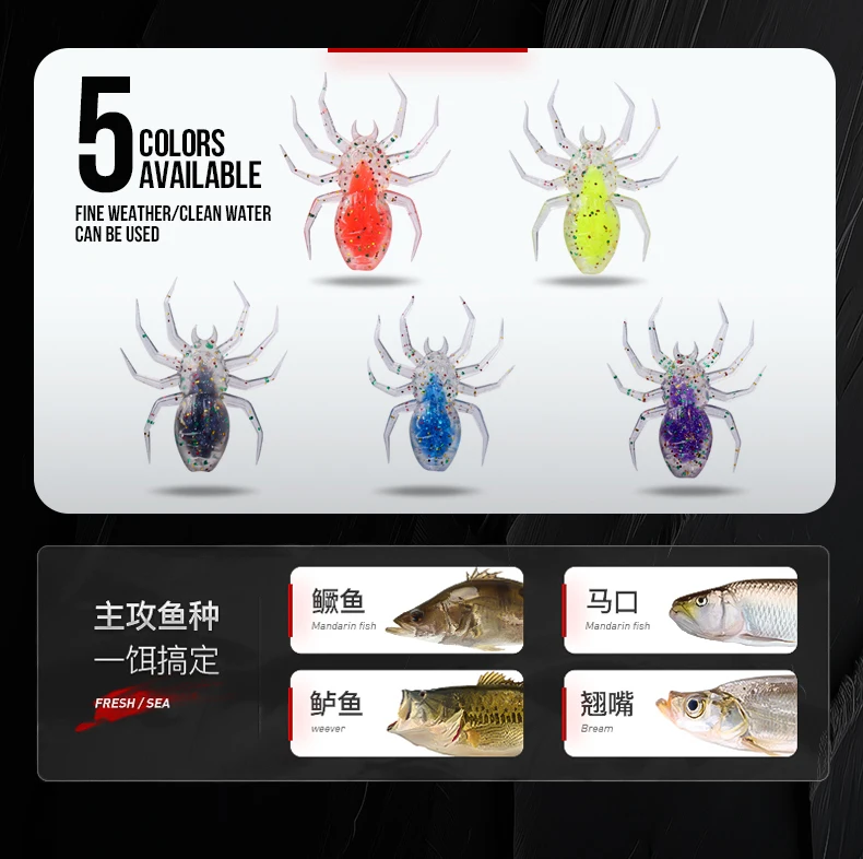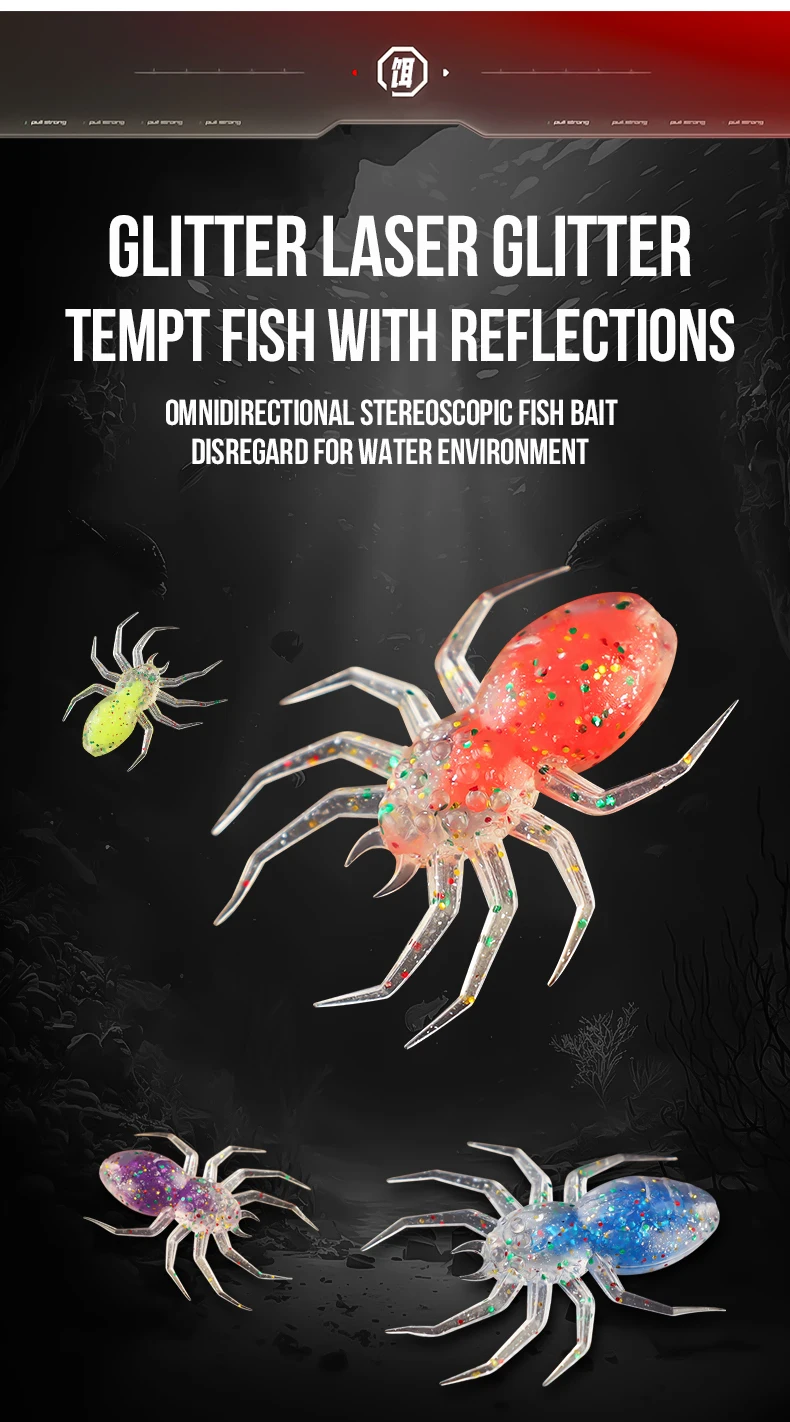 TAIYU 15 unids/set señuelo de araña suave con ganchos caja de almacenamiento cebo de pesca 4 cm/1,3g Micro cebo de araña biónico Artificial aparejos de pesca