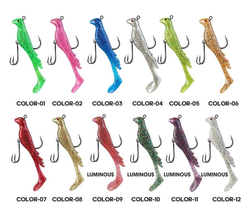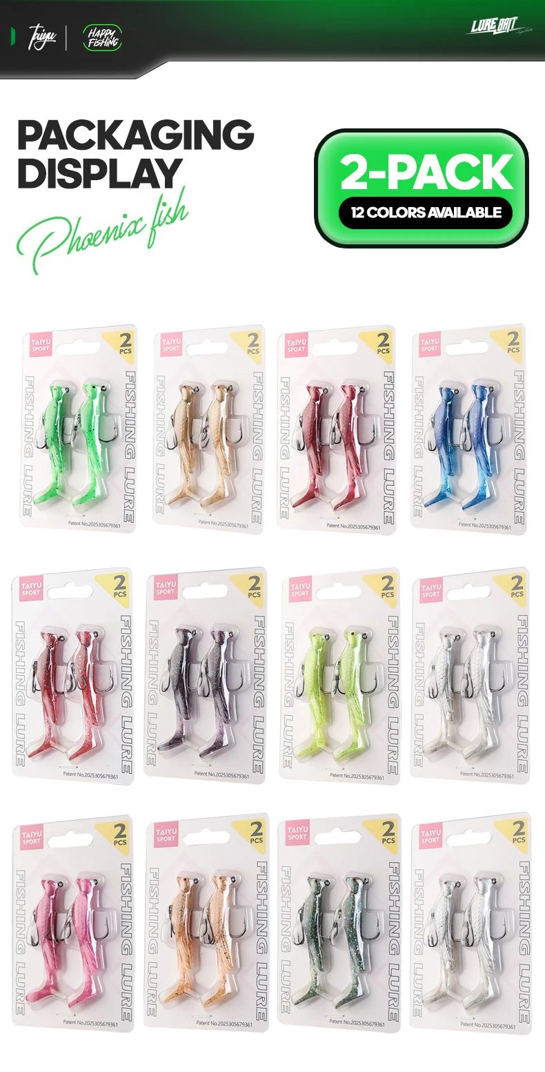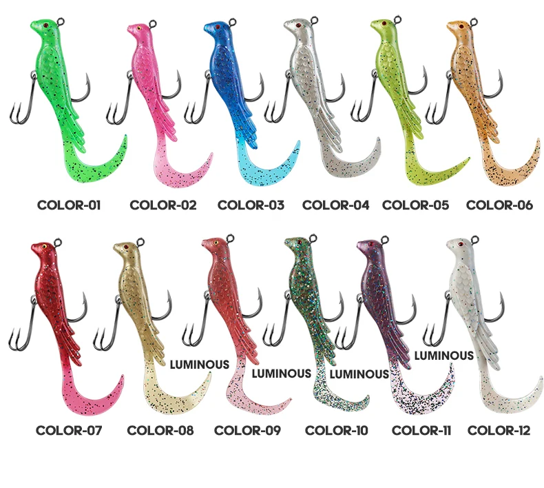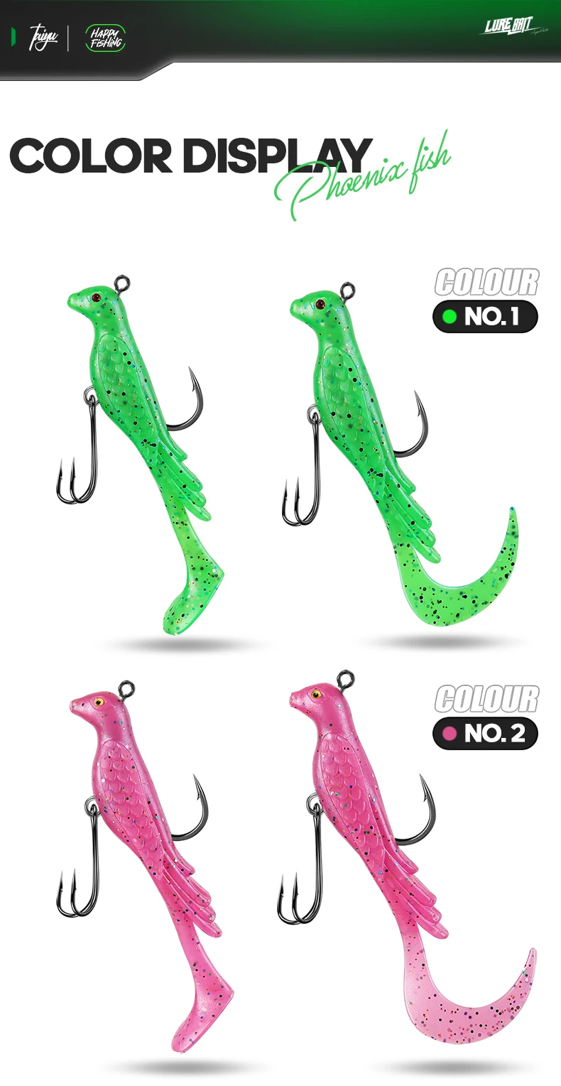 TAIYU 2 uds Phoenix Bird señuelo de pesca suave multicolor ondas grandes enrolladas señuelo de pesca falso para agua salada/cebo de pesca de agua dulce