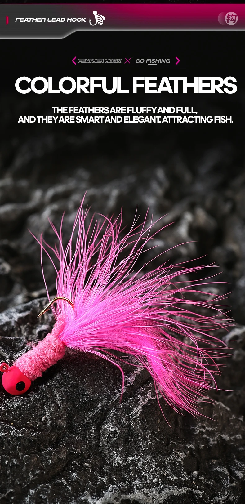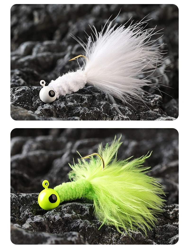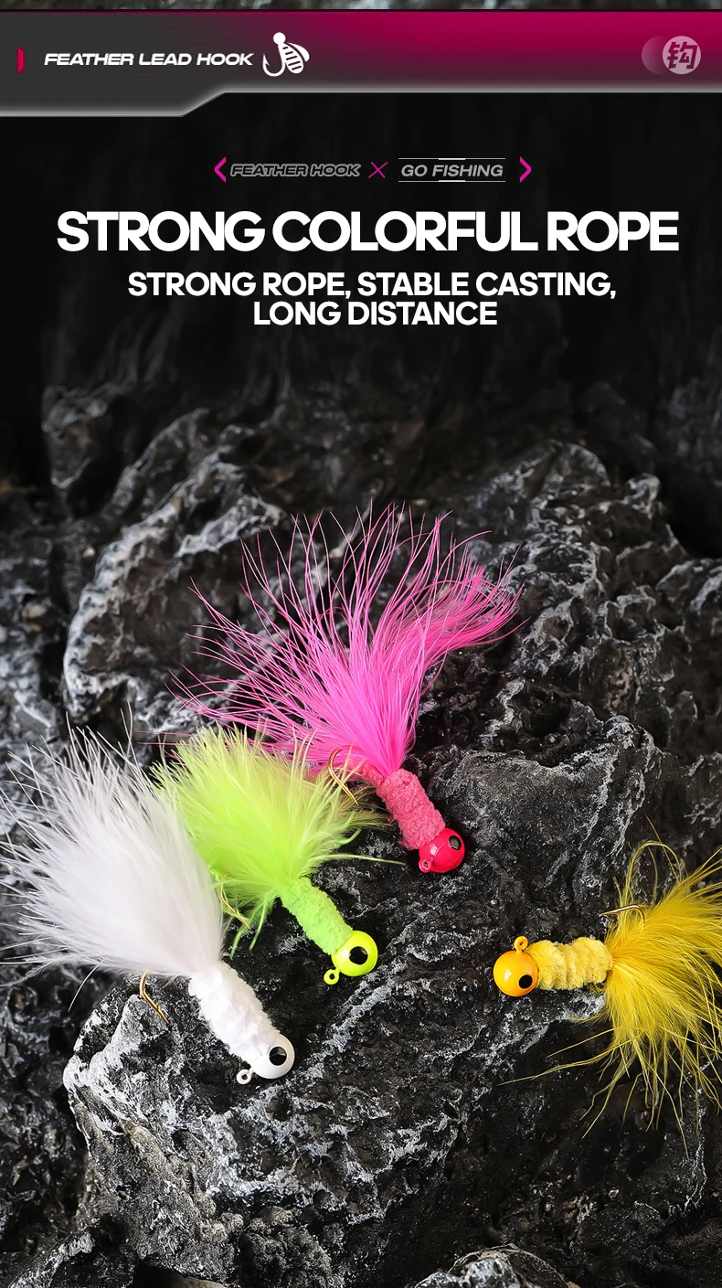 Con plumas de colores, estos anzuelos atraen a los peces con sus colores vibrantes, mejorando su eficacia como señuelos.