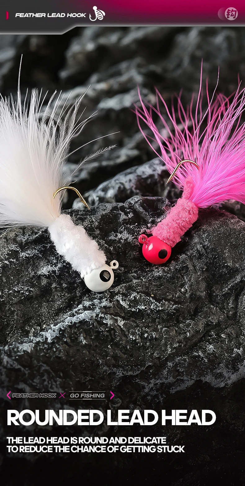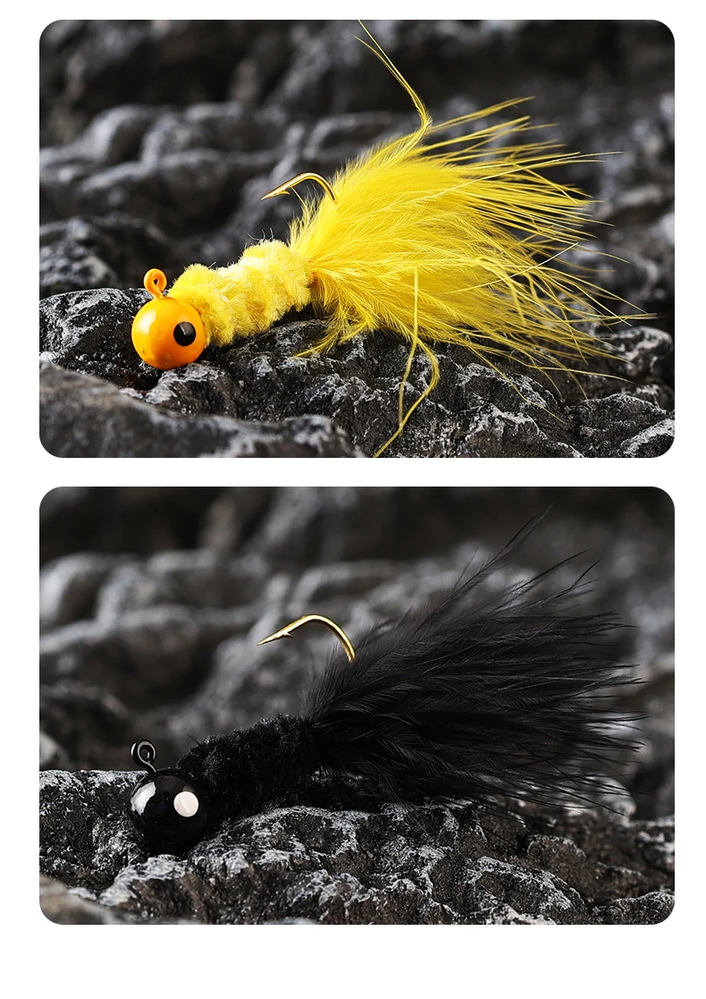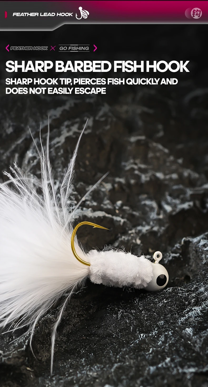 Con plumas de colores, estos anzuelos atraen a los peces con sus colores vibrantes, mejorando su eficacia como señuelos.