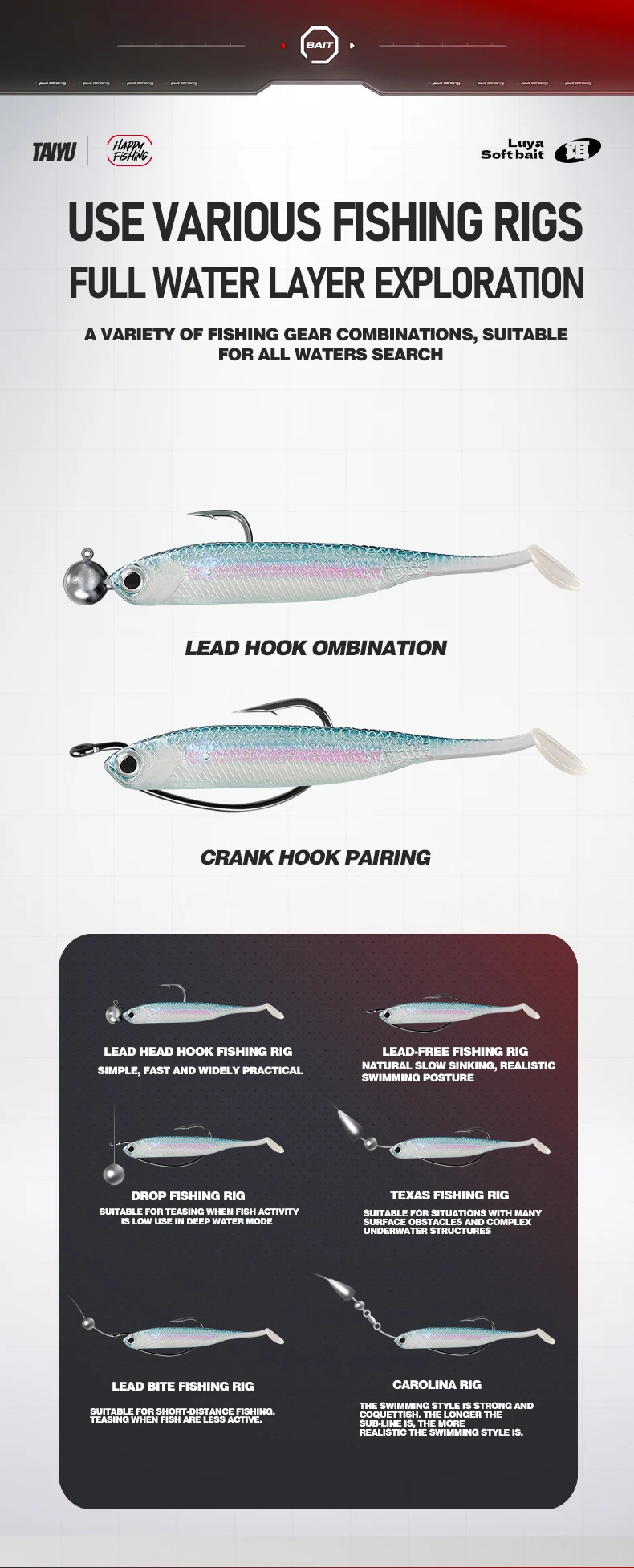 El kit de señuelos TAIYU presenta un diseño de alta simulación, que imita peces reales para atraer presas de manera efectiva.