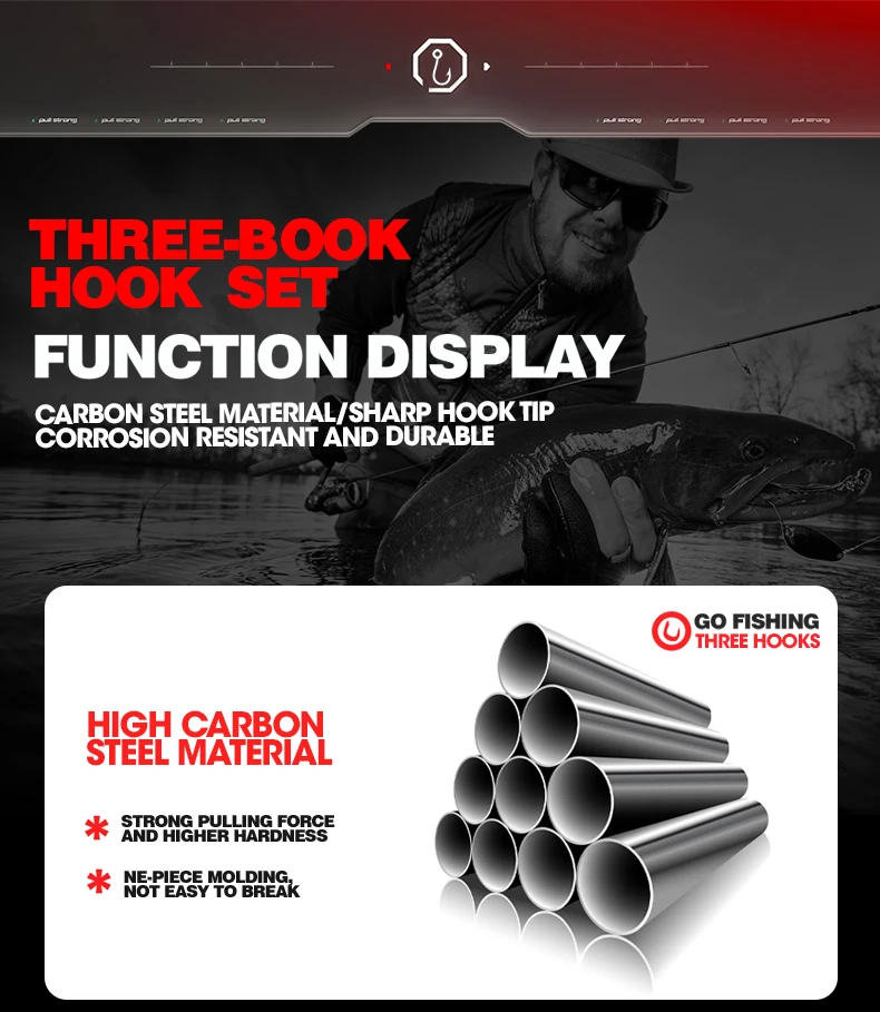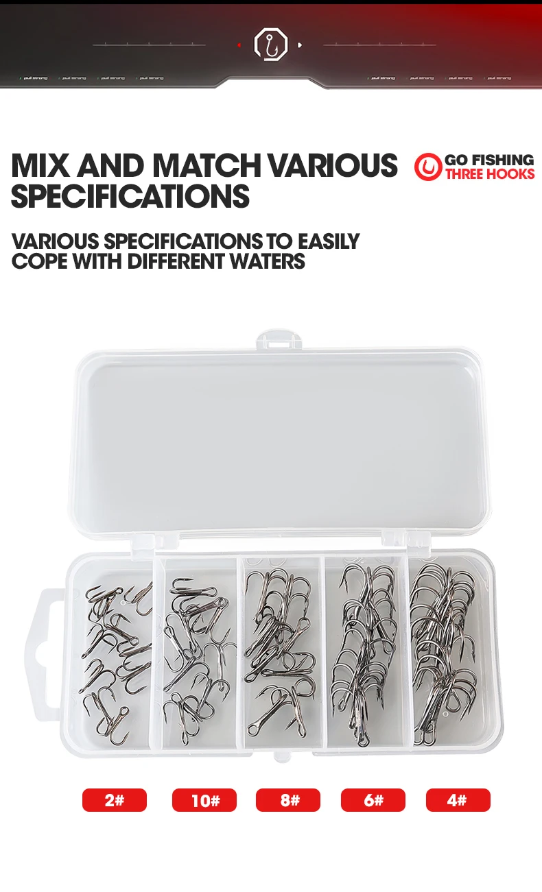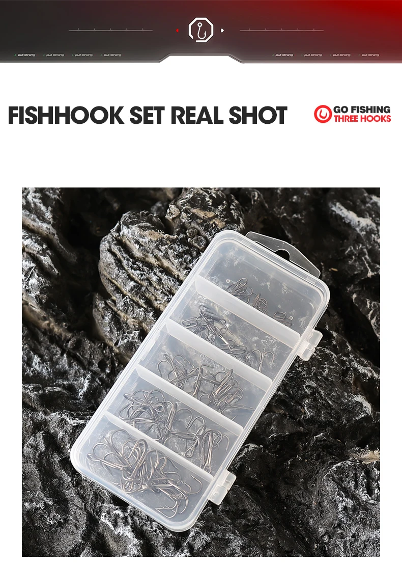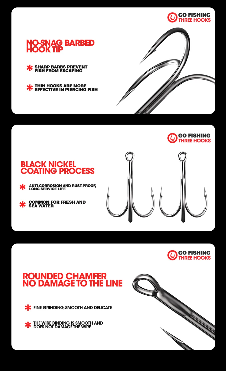 El juego de combinación de tres anzuelos incluye anzuelos triples, ideales para diversos escenarios y técnicas de pesca.