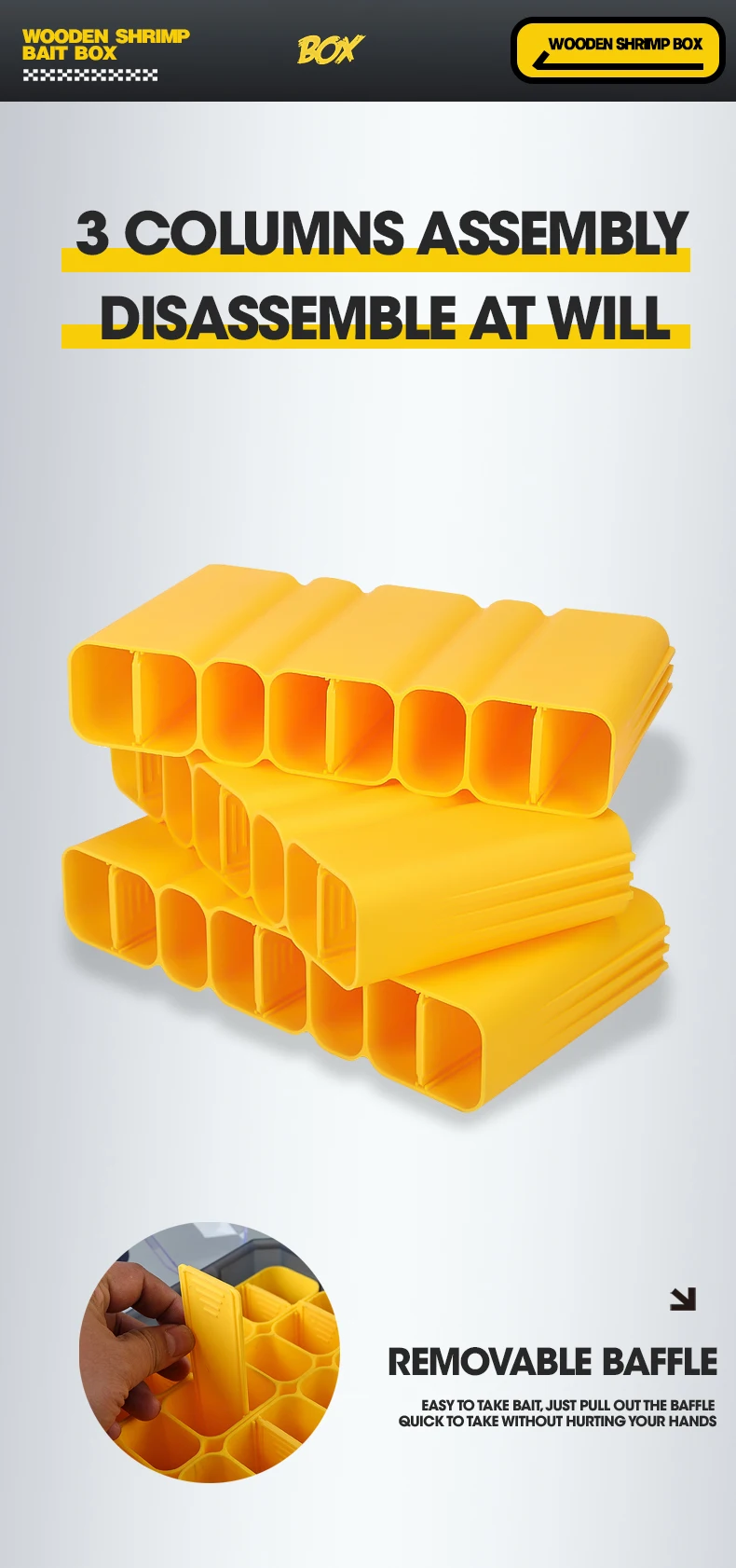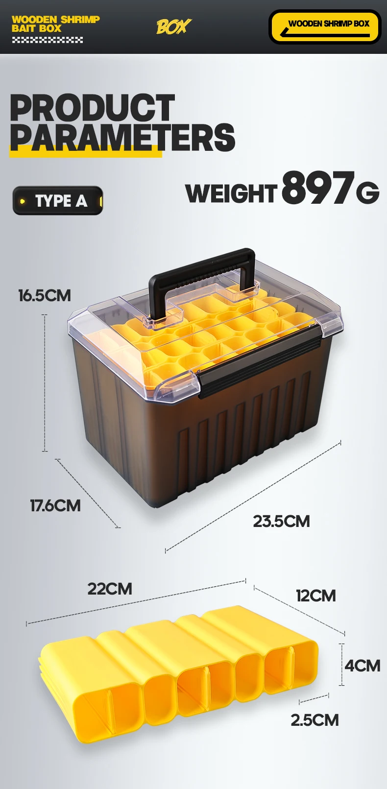 Fabricada con madera de alta calidad, la caja de camarones TAIYU garantiza durabilidad y un uso duradero, perfecta para pescadores ávidos.