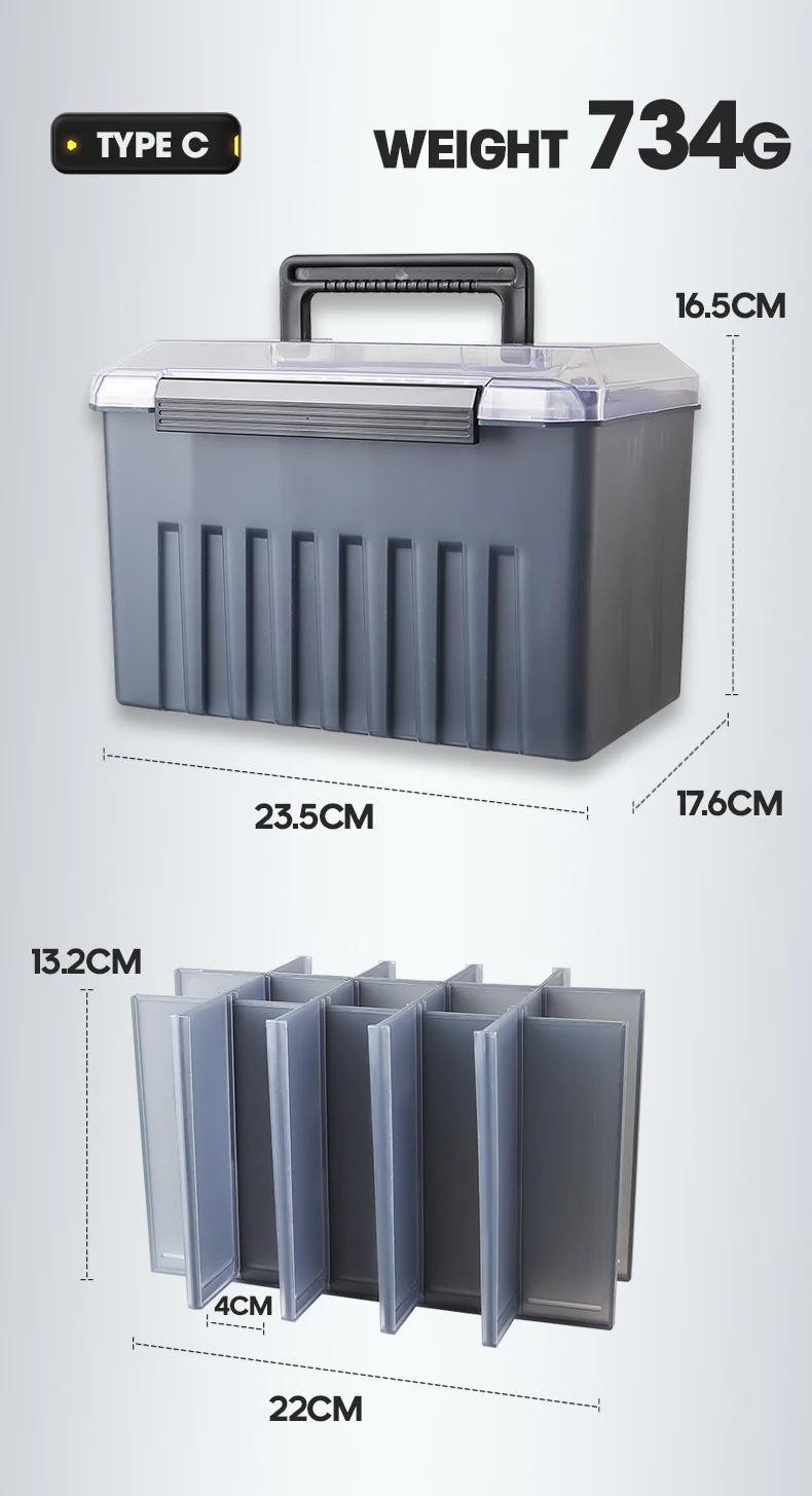 Esta caja de aparejos de pesca presenta un diseño de ensamblaje extraíble, lo que permite una fácil personalización y adaptación a sus necesidades específicas.