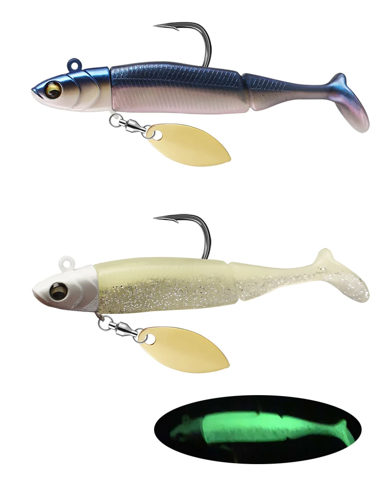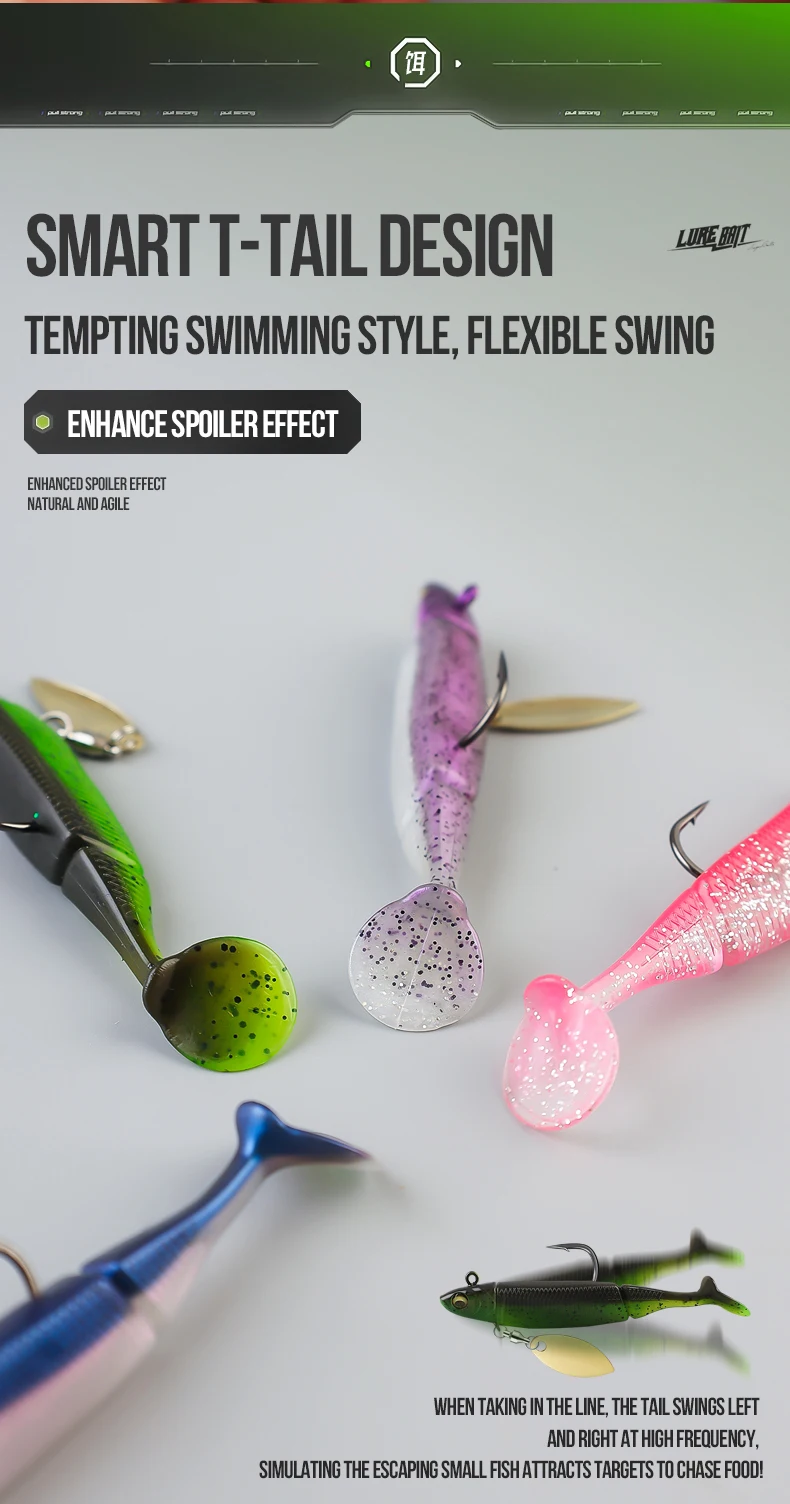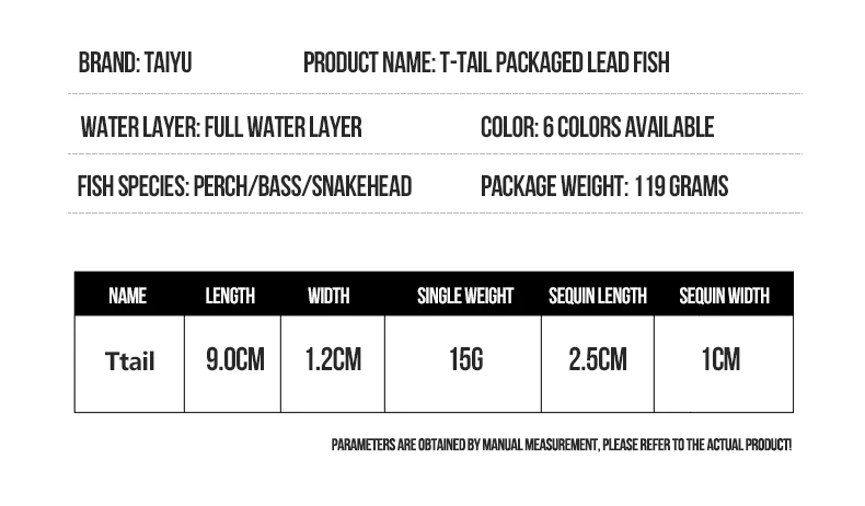 TAIYU, juego de 6 piezas, 9cm, 15g, anzuelo con cabeza de plomo, cola en T, señuelo de pesca envuelto en plomo, cebo suave, brillo nocturno, señuelo de pesca de mar, cebo suave im
