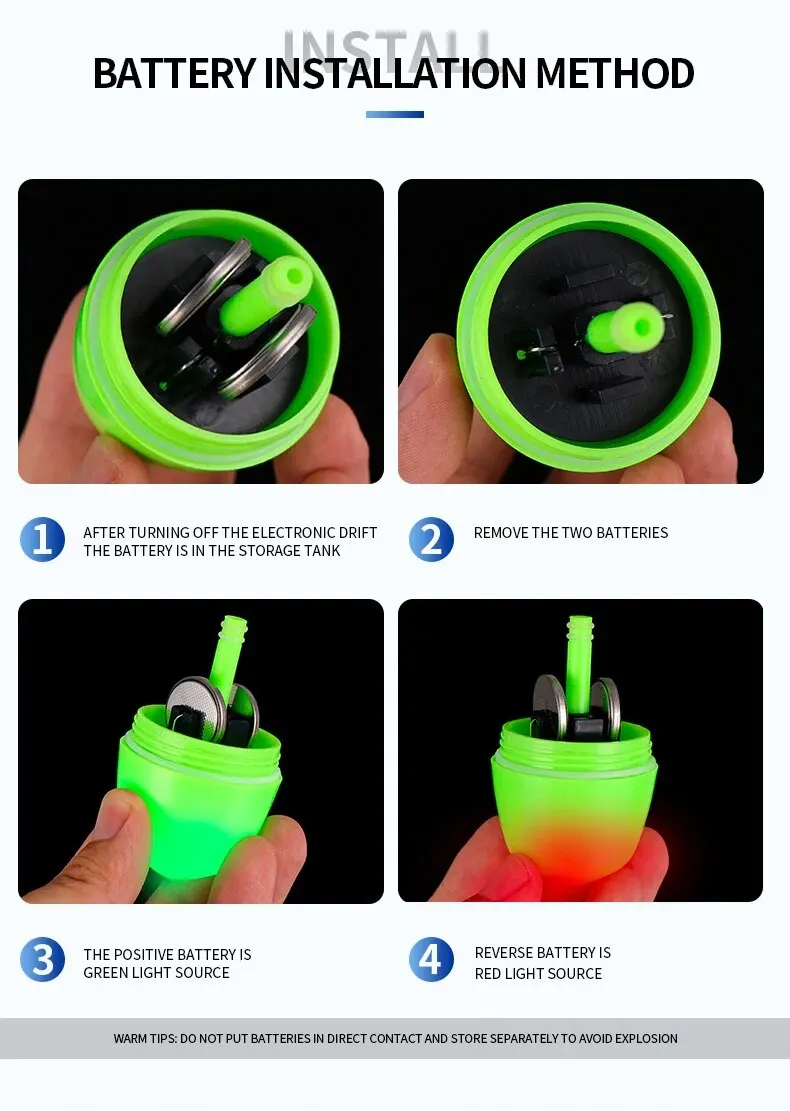 【Instrucciones】: Método de instalación de la batería: la batería del cabezal rojo está enchufada hacia adelante y el enchufe inverso es luz roja, la cabeza verde y amarilla está enchufada en la batería es la fuente de luz verde, la batería se inserta al revés es la fuente de luz roja