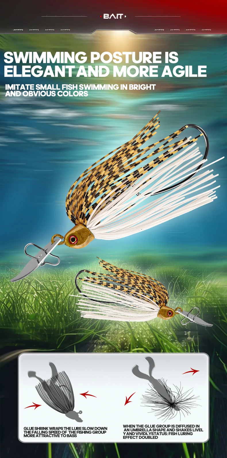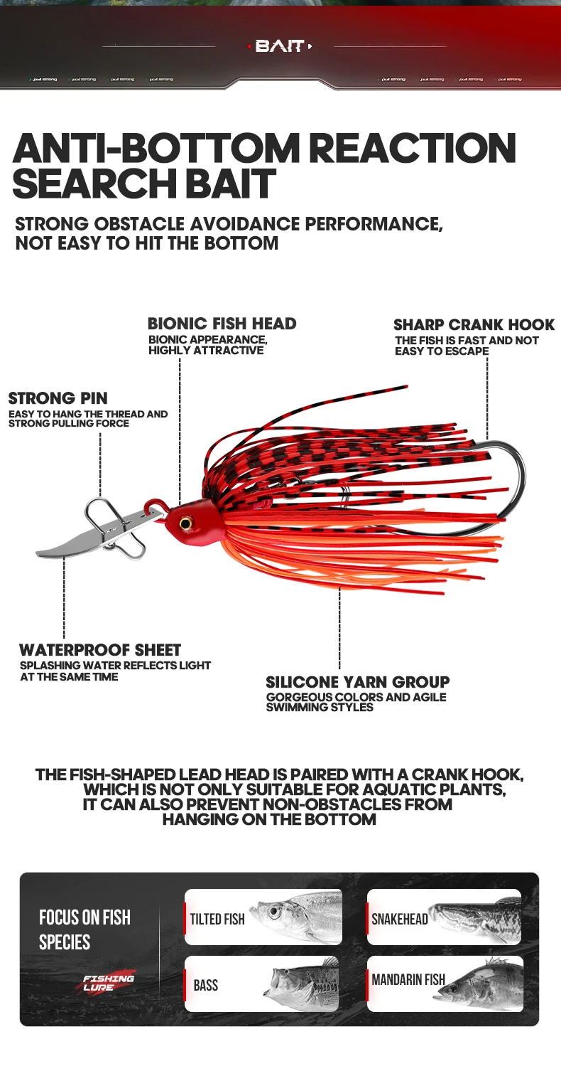 TAIYU Kit de Señuelos de Pesca (1-5 Piezas): Chatterbait, Señuelo con Hoja Grande Anti-enredos, Jig Dancer, Spinnerbait, Wobbler, Crankbait