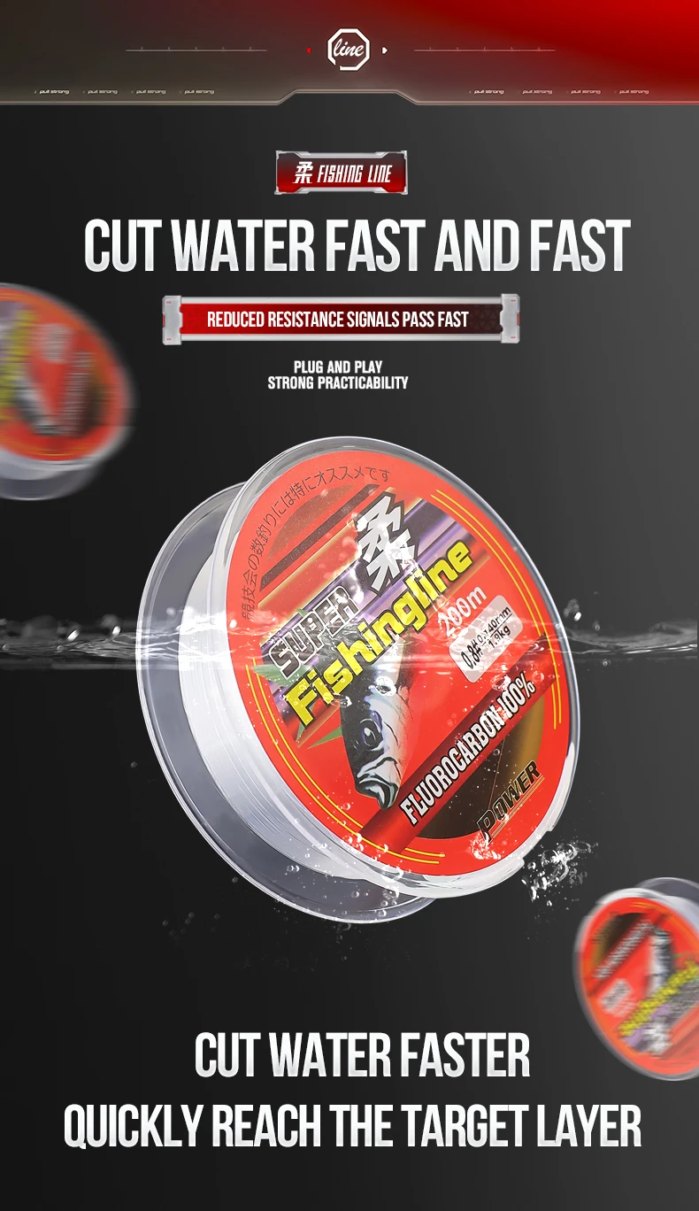 5. Después de un tratamiento especial, se mejora la superficie de la línea de pesca, se aumenta la densidad y la fuerza de la línea de pesca y se reduce la tensión superficial del agua, para que la línea de pesca absorba el agua y pueda estar en el agua rápidamente con menos fricción.