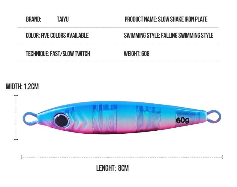 TAIYU Placa de hierro de extracción rápida pescado de plomo 20g/30g/40g placa de hierro Barracuda con cuchara giratoria de un solo Flash bomba de pesca de barco amarillo T