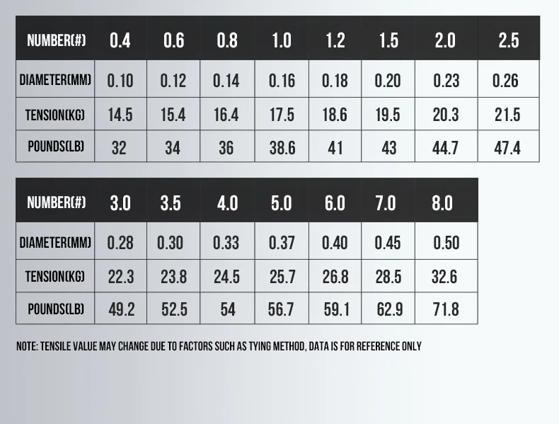 【Fuerza de tracción (LB) 】: 32/34/36/38.6/41/43/44.7/47.4/49.2/52.5/54/56.7/59.1/62.9/71.8