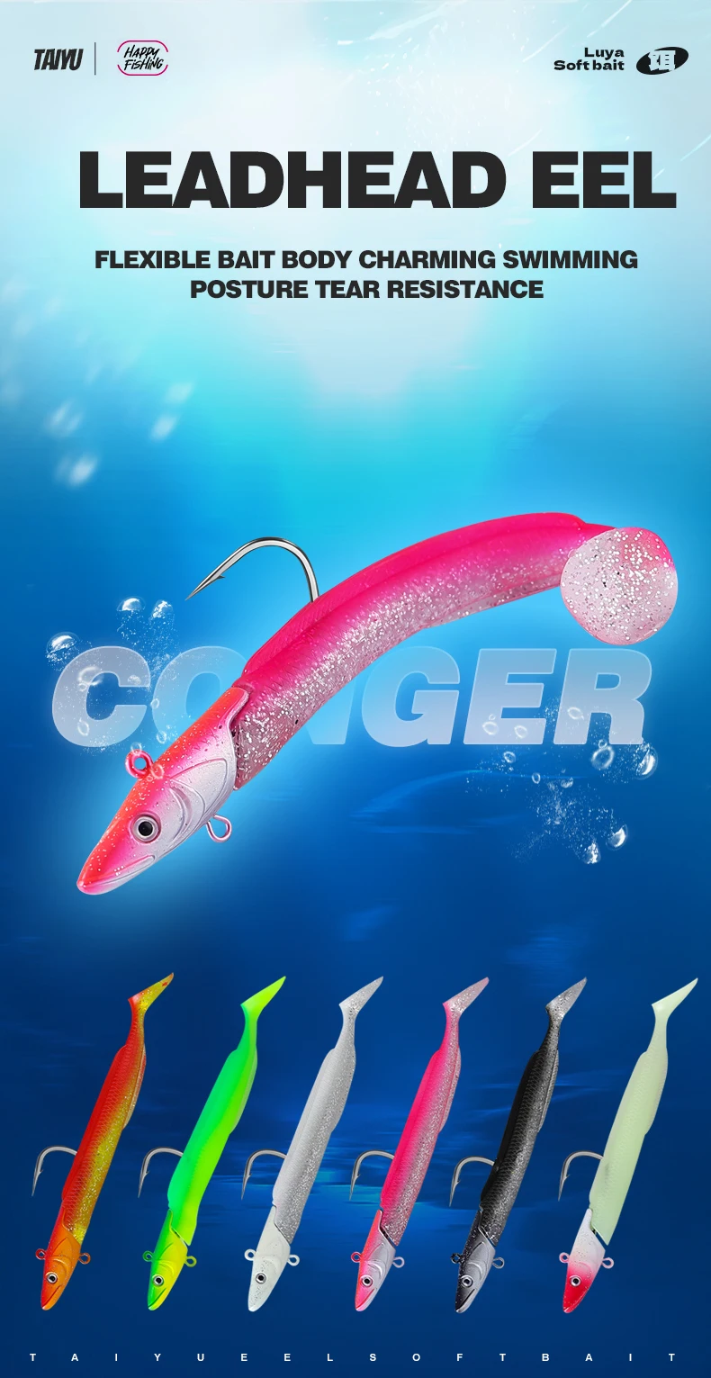 Elaborado por TAIYU, este juego de anguilas de cebo blando cuenta con materiales duraderos, lo que garantiza un uso duradero para sus aventuras de pesca.