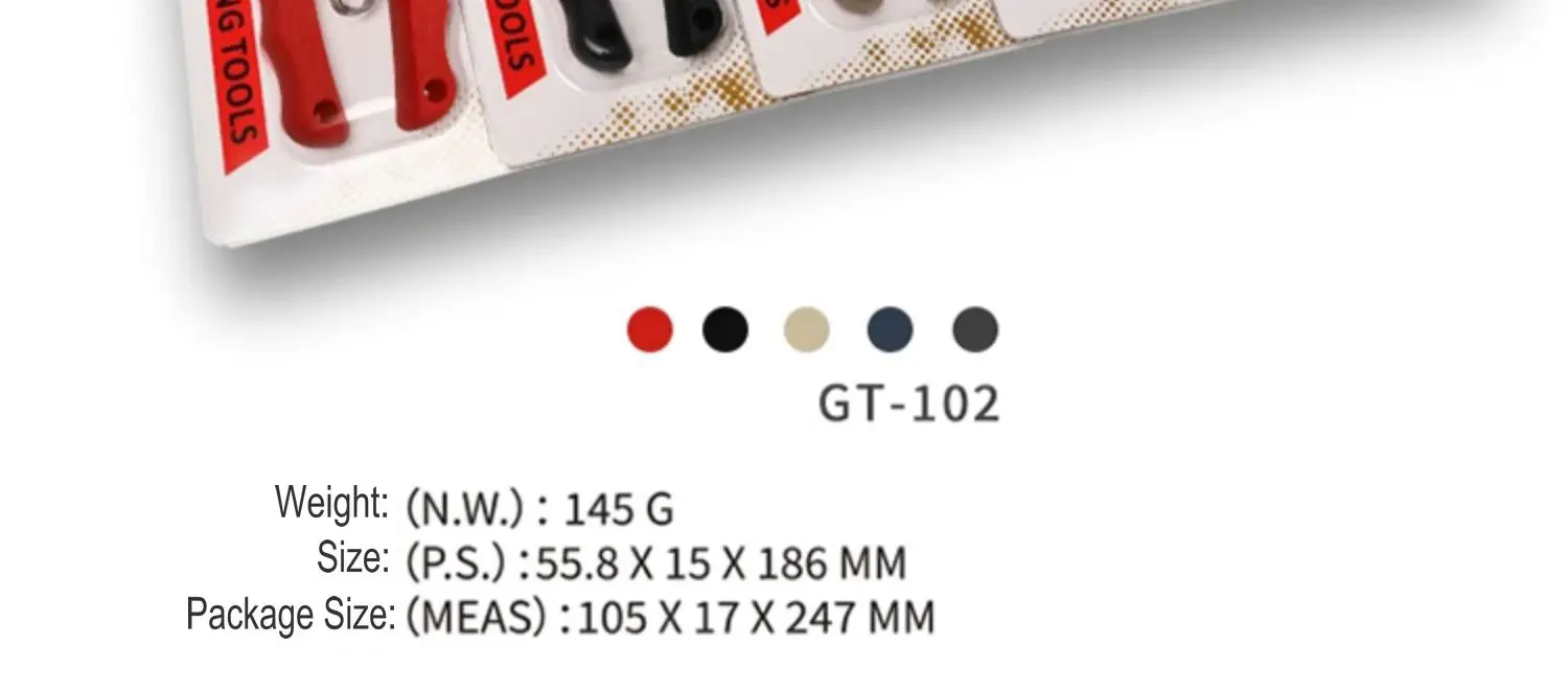 GT102: Peso: 145g tamaño: 186X55.8X15mm Tamaño del paquete: 247X105X17mm