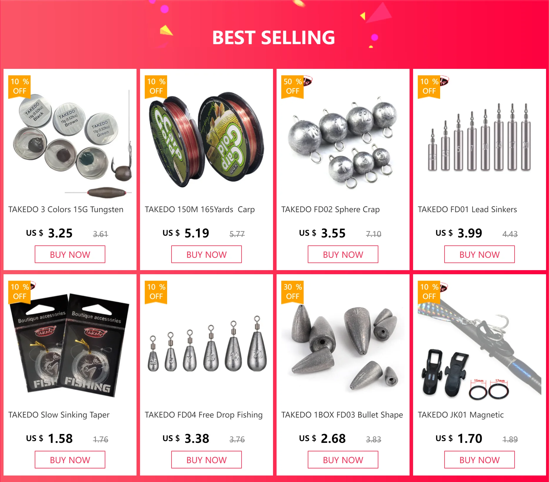 TAKEDO 1 caja FD06 plomo de pesca de Metal 3,5G-14G colgante de inserción de plomo peso de pesca accesorios de pesca todo para pesca